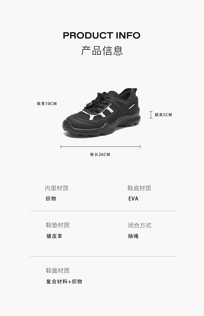 | 鞋帮:低帮 | 鞋底材质:EVA | 内增高:无 | 鞋面材质:织物复合材料 | 闭合方式:系带 |