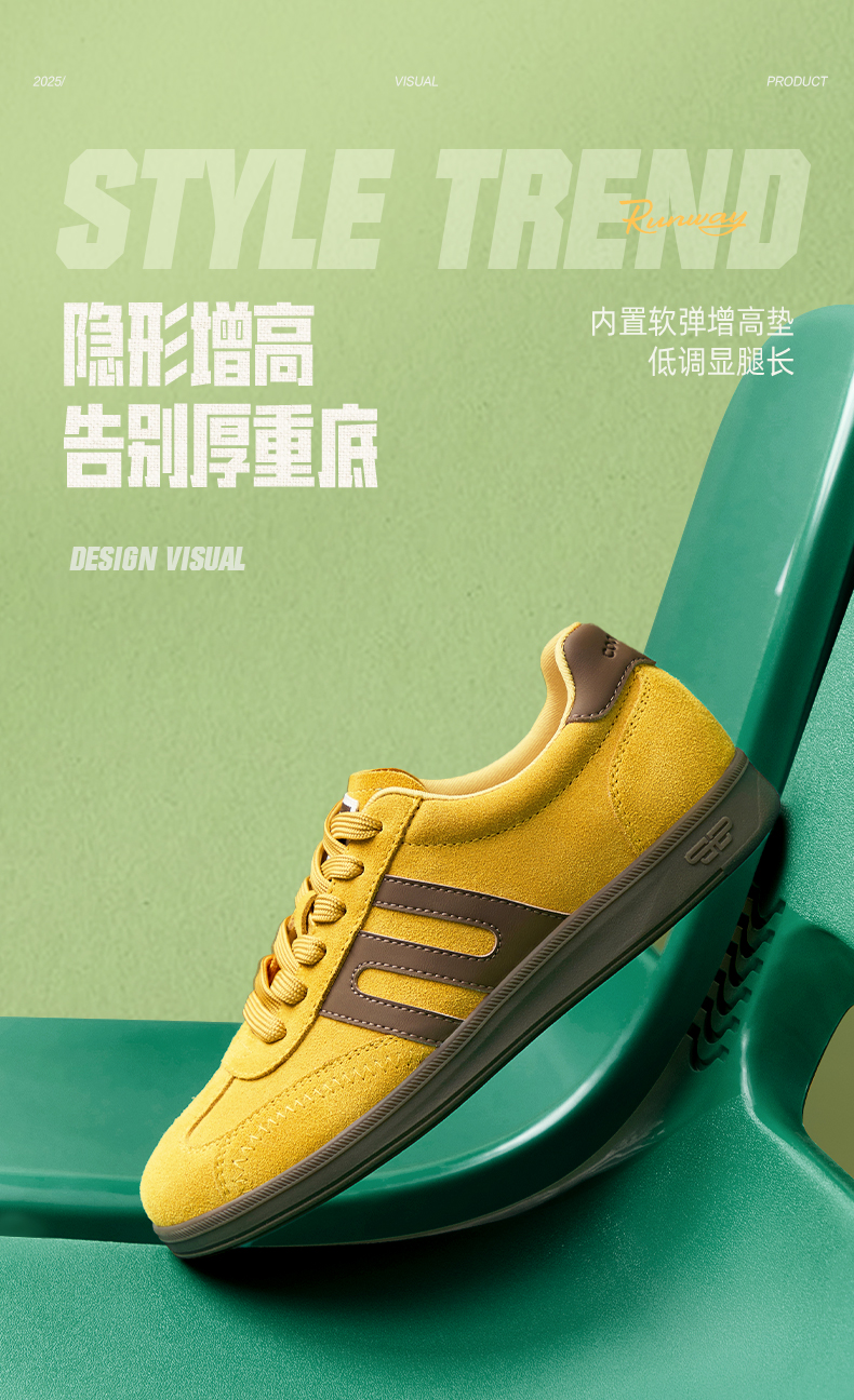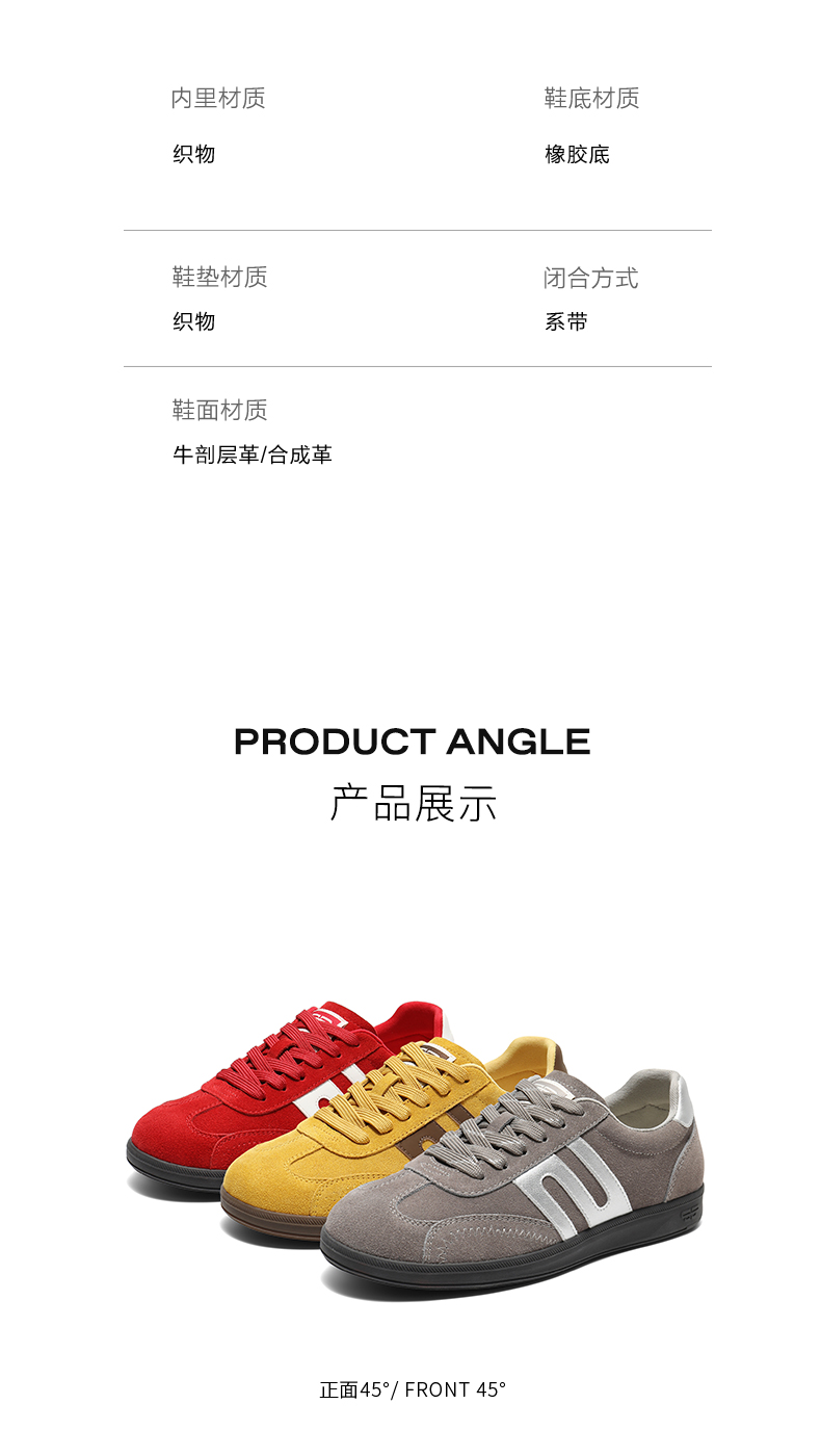 | 鞋帮:低帮 | 鞋底材质:橡胶底 | 内增高:2CM | 鞋面材质:牛剖层革合成革 | 闭合方式:系带 |