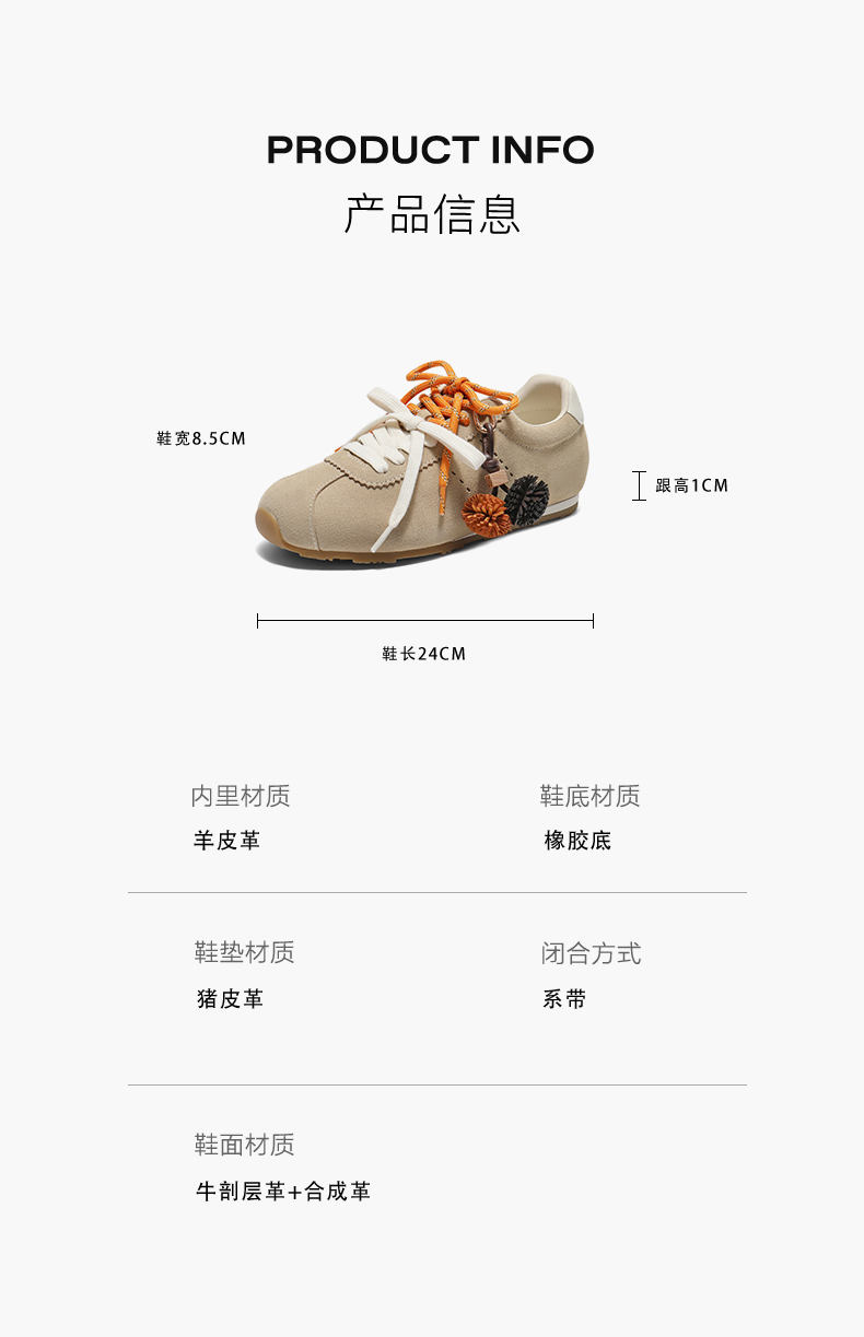 | 鞋帮:低帮 | 鞋底材质:橡胶底 | 内增高:无 | 鞋面材质:合成革牛剖层革 | 闭合方式:系带 |