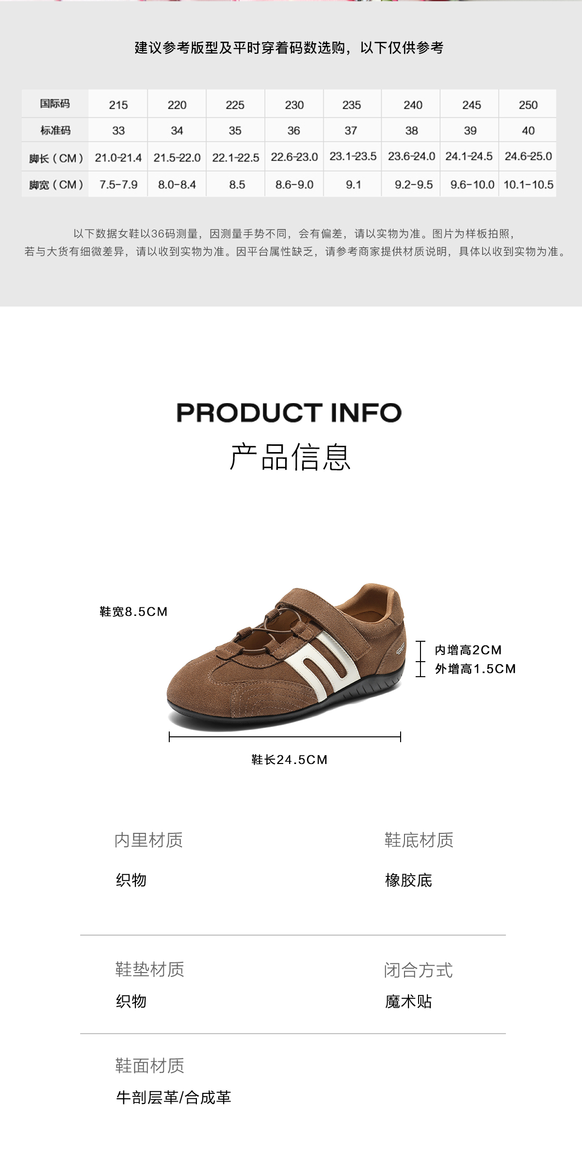| 鞋帮:低帮 | 鞋底材质:橡胶底 | 内增高:2CM | 鞋面材质:牛剖层革合成革 | 闭合方式:系带 |