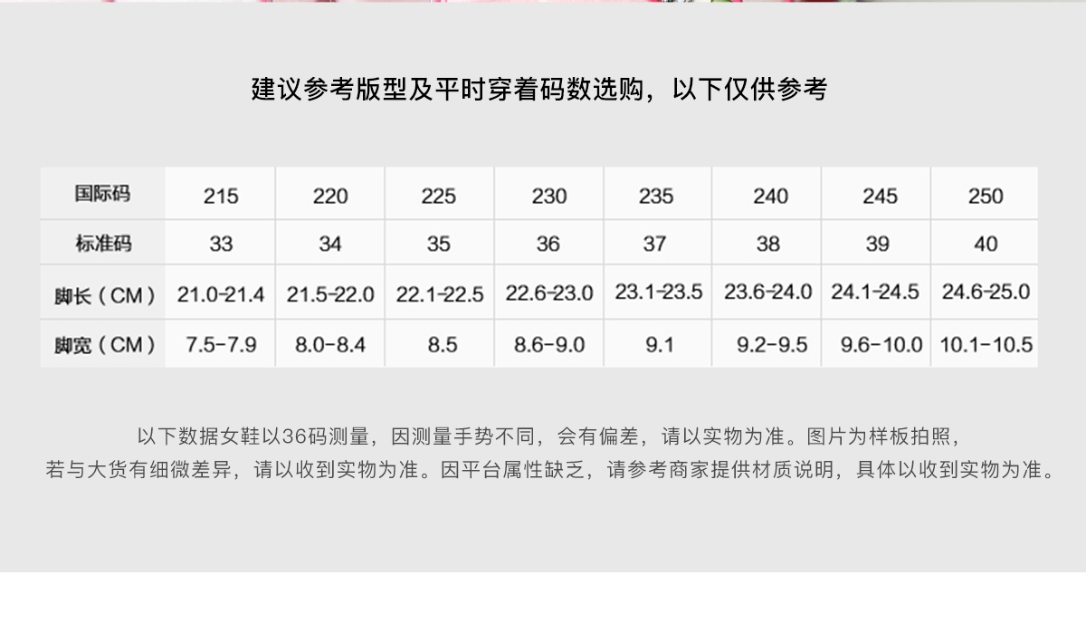 | 鞋跟形状:平底 | 参考鞋长(女):24.5CM | 流行元素:撞色 | 参考鞋宽(女):8.5CM | 风格:休闲 |