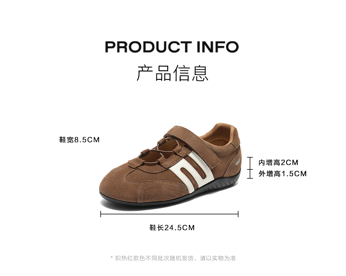 | 鞋帮:低帮 | 鞋底材质:橡胶底 | 内增高:2CM | 鞋面材质:猪剖层革合成革 | 闭合方式:系带 |