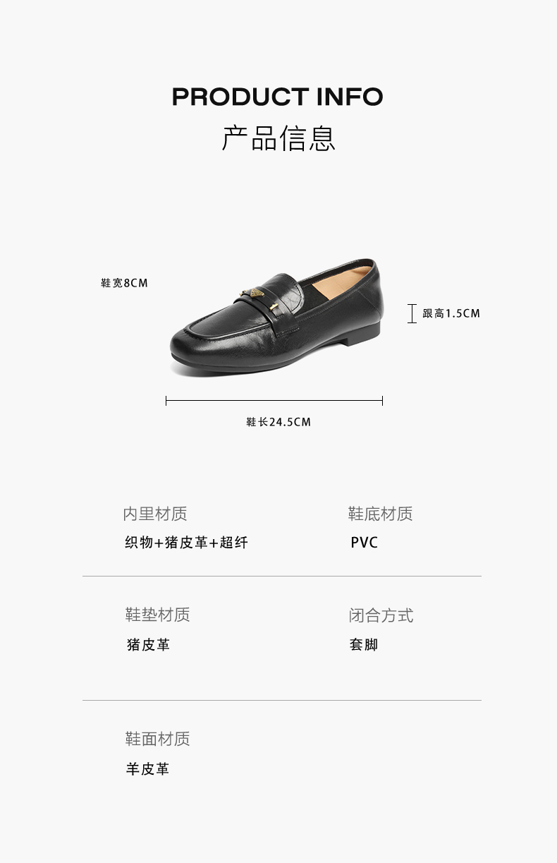 | 配跟:无 | 上市时间:2025年秋季 | 鞋类流行款式:乐福鞋 | 鞋头款式:小方头 | 鞋面图案:纯色 |