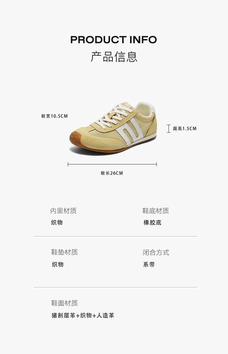 | 鞋面内里材质:织物 | 色系:黄色 | 跟高数值:1.5CM | 性别:女子 | 里料材质:织物 |