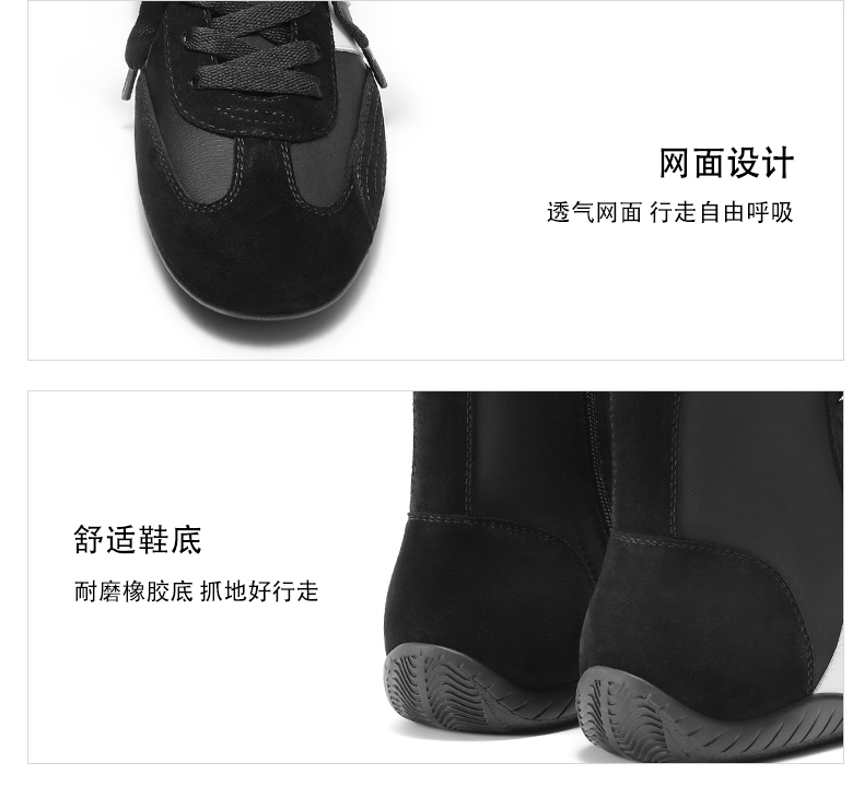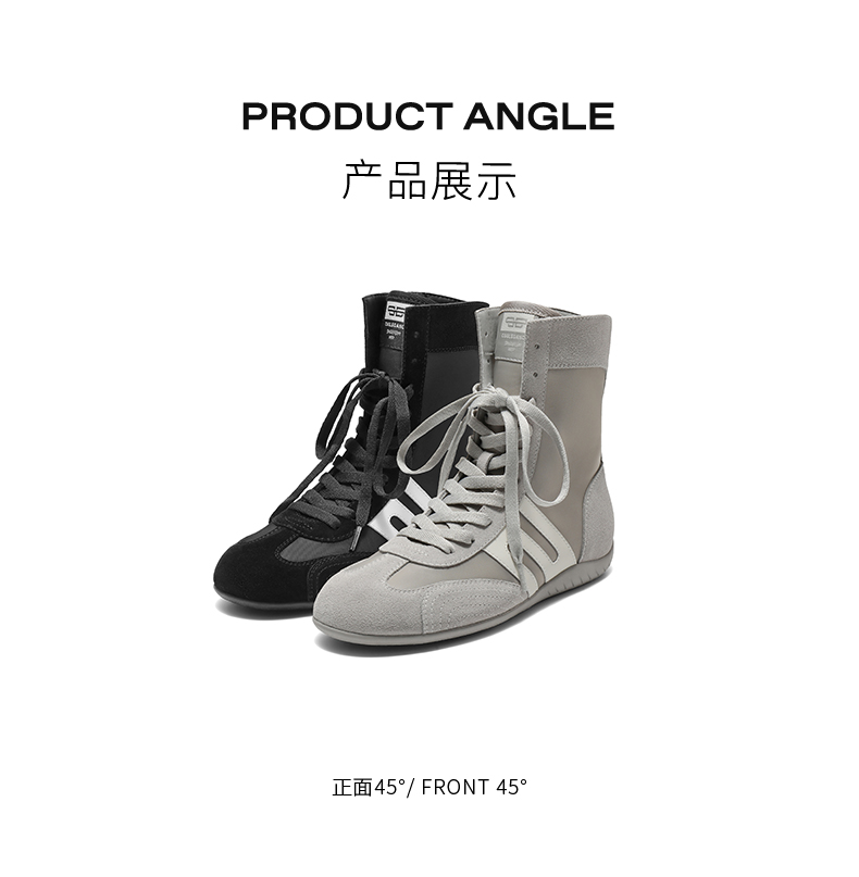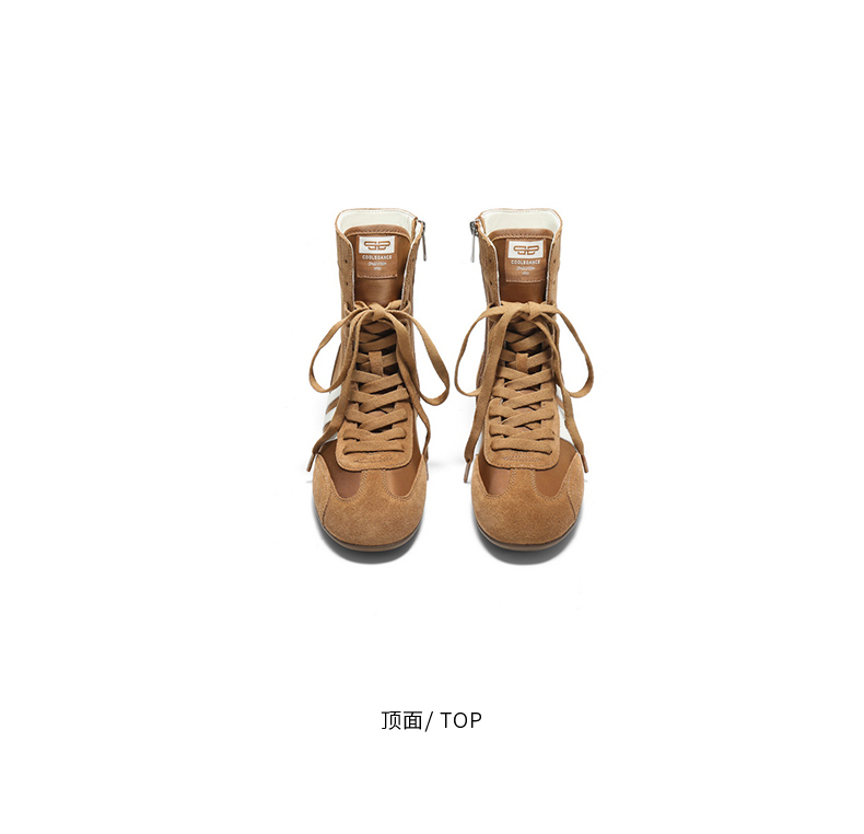 | 帮面材质:牛剖层革人造革织物 | 配跟:无 | 上市时间:2025年秋季 | 鞋类流行款式:低靴 | 鞋头款式:圆头 |