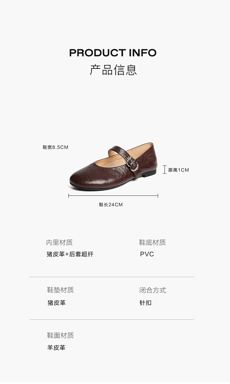 | 上市时间:2025年秋季 | 鞋类流行款式:玛丽珍鞋 | 鞋头款式:圆头 | 鞋面图案:纯色 | 鞋跟形状:平跟 |
