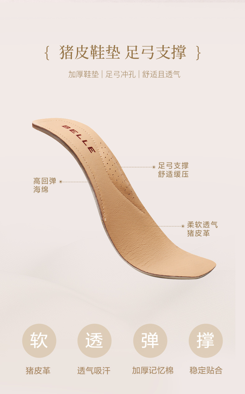 BeLLE(百丽),百变所以美丽。主张多变多元的新生代态度,不断融合潮流趋势,拥抱不同的生活体验与生活经历。将女性的百变魅力注入到鞋履设计中,让女人在不同的人生阶段,不同的场合,不同的潮流趋势下,尽显自己自信的一面。致力于为现代都市女性提供充满自由的行走体验。