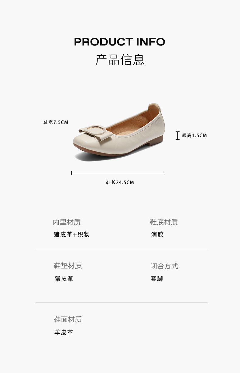 | 上市时间:2025年秋季 | 鞋类流行款式:浅口鞋 | 鞋头款式:方头 | 鞋面图案:纯色 | 鞋跟形状:平跟 |