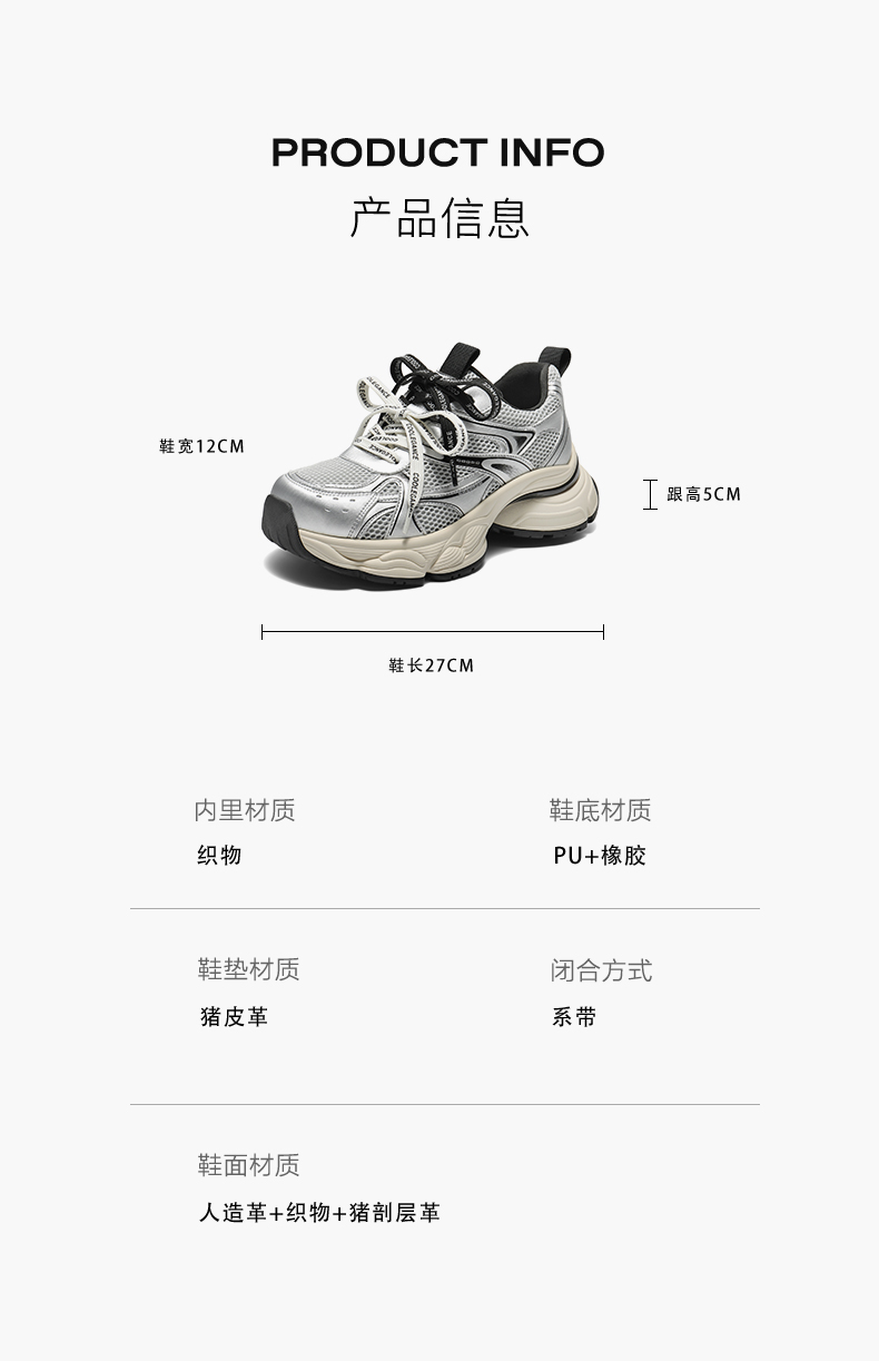 | 配跟:无 | 上市时间:2025年秋季 | 鞋类流行款式:老爹鞋 | 鞋头款式:圆头 | 鞋面图案:拼色 |
