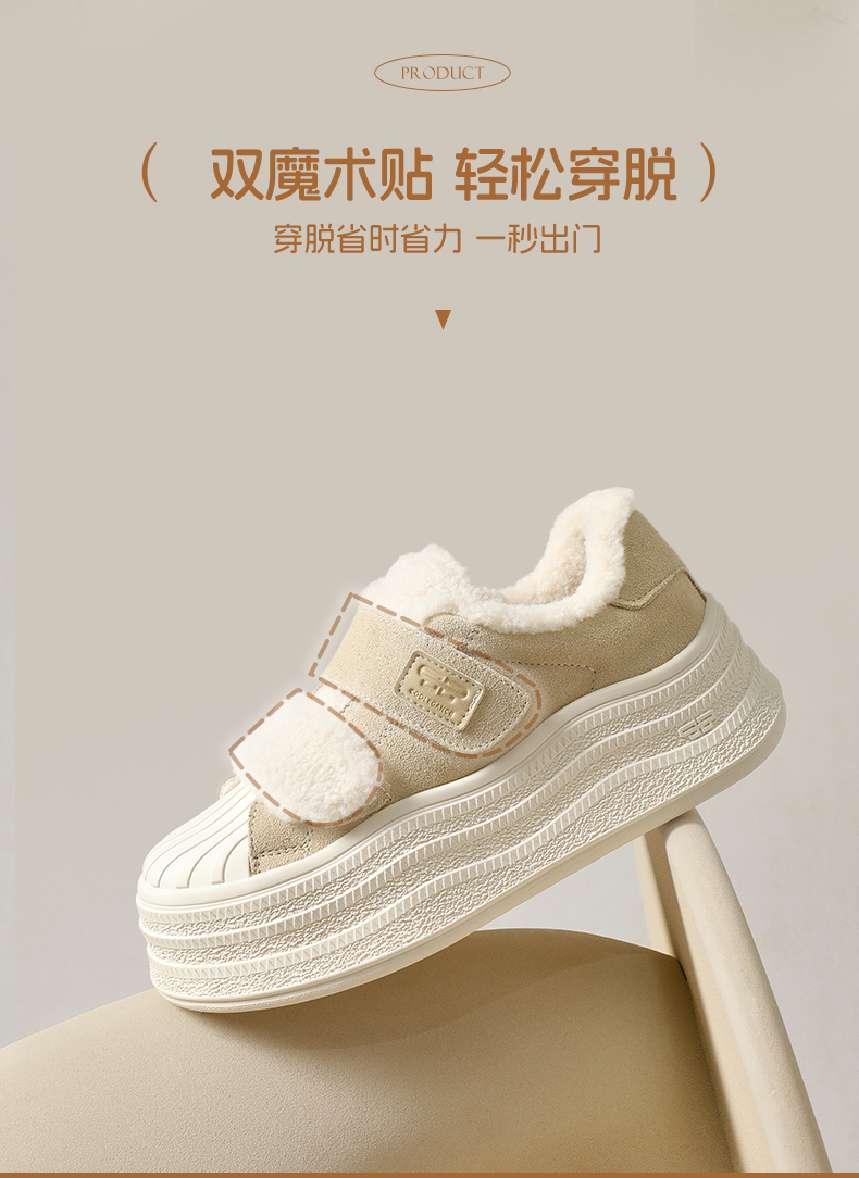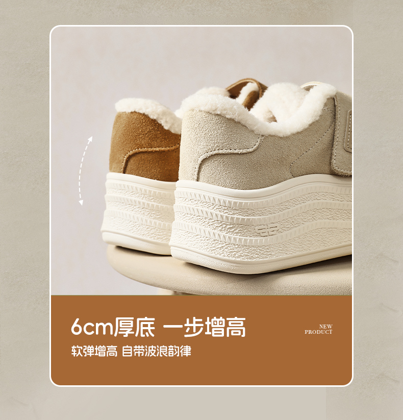 | 风格:休闲 | 鞋面内里材质:人造短毛绒 | 色系:杏色 | 跟高数值:6CM | 适用人群:通用 |