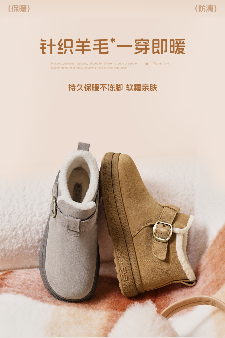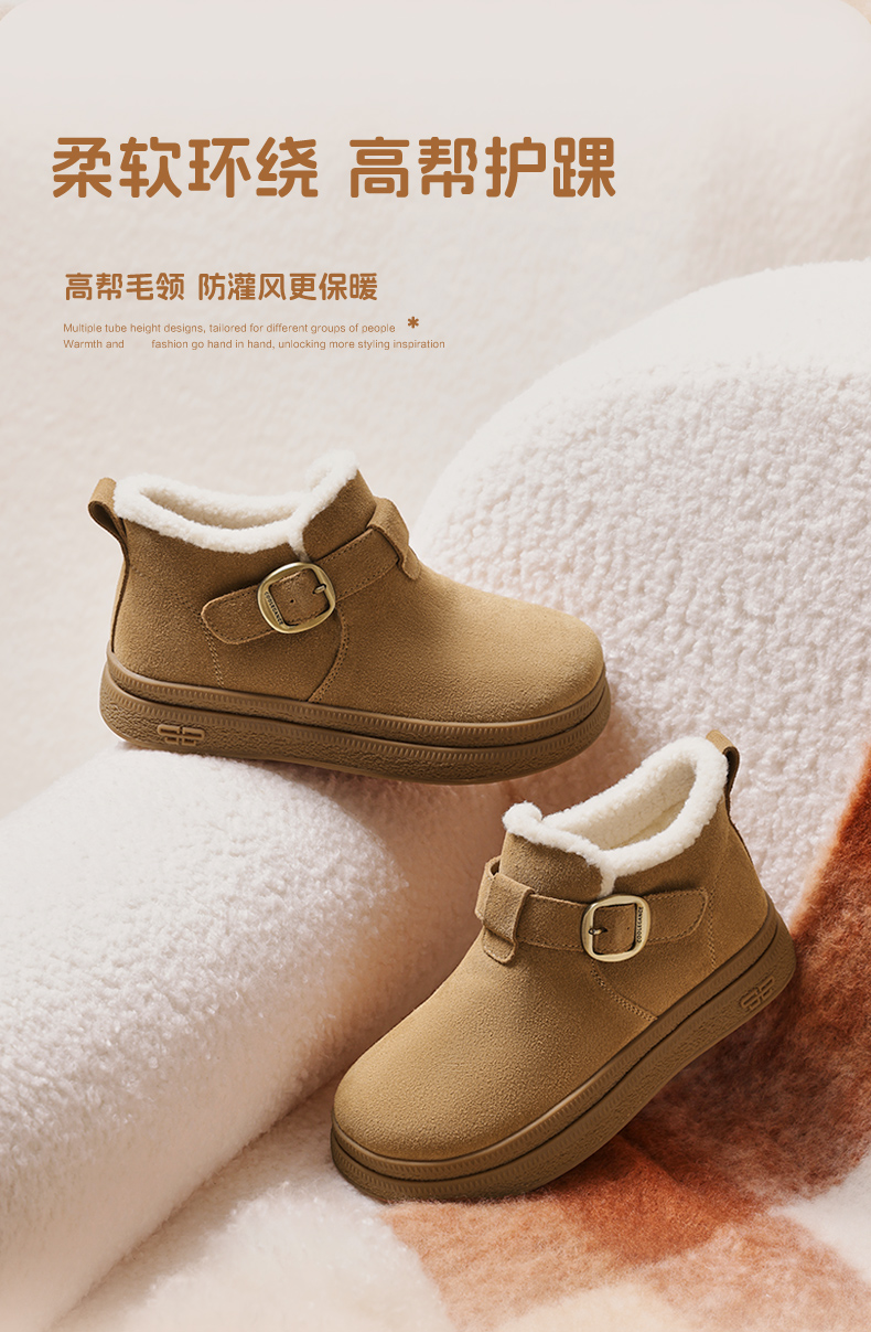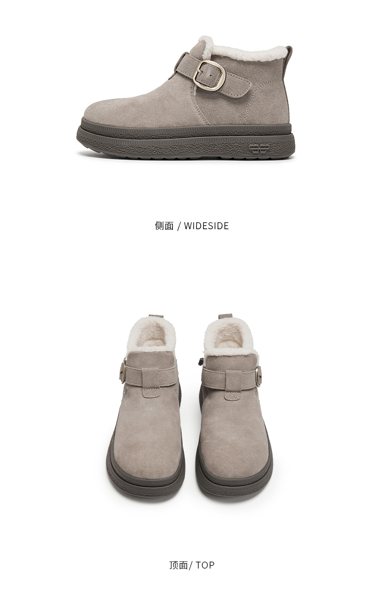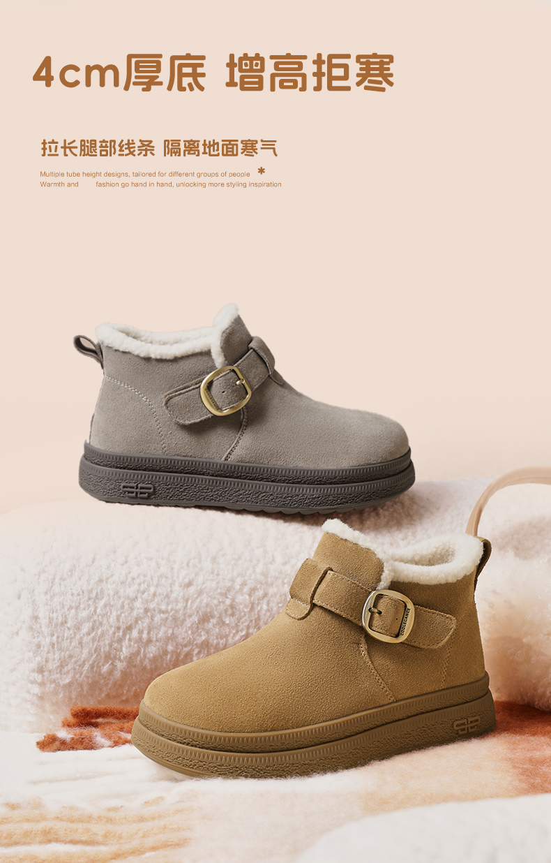 | 帮面材质:牛剖层革 | 配跟:无 | 靴筒口围:30CM | 上市时间:2025年冬季 | 鞋类流行款式:雪地靴 |