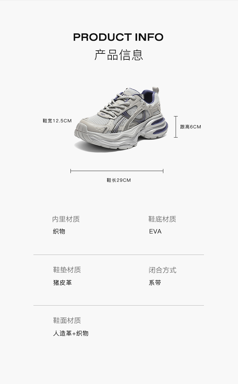 | 配跟:无 | 上市时间:2025年秋季 | 鞋类流行款式:老爹鞋 | 鞋头款式:圆头 | 鞋面图案:拼色 |