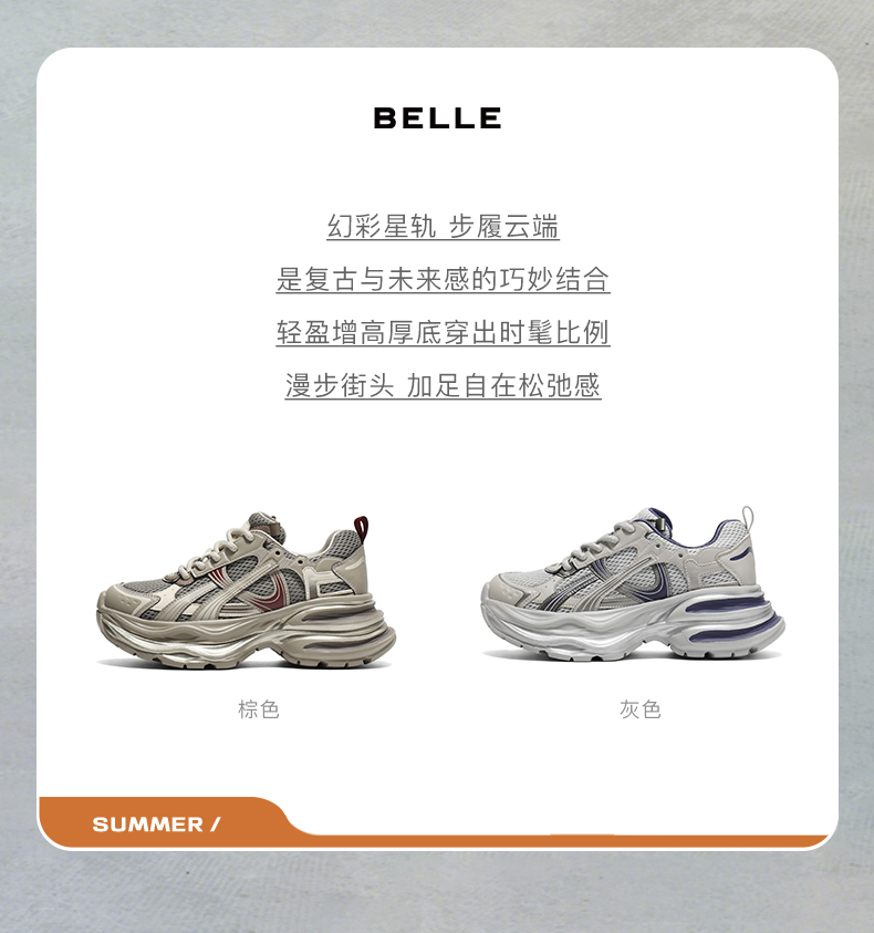 BeLLE(百丽),百变所以美丽。主张多变多元的新生代态度,不断融合潮流趋势,拥抱不同的生活体验与生活经历。将女性的百变魅力注入到鞋履设计中,让女人在不同的人生阶段,不同的场合,不同的潮流趋势下,尽显自己自信的一面。致力于为现代都市女性提供充满自由的行走体验。
