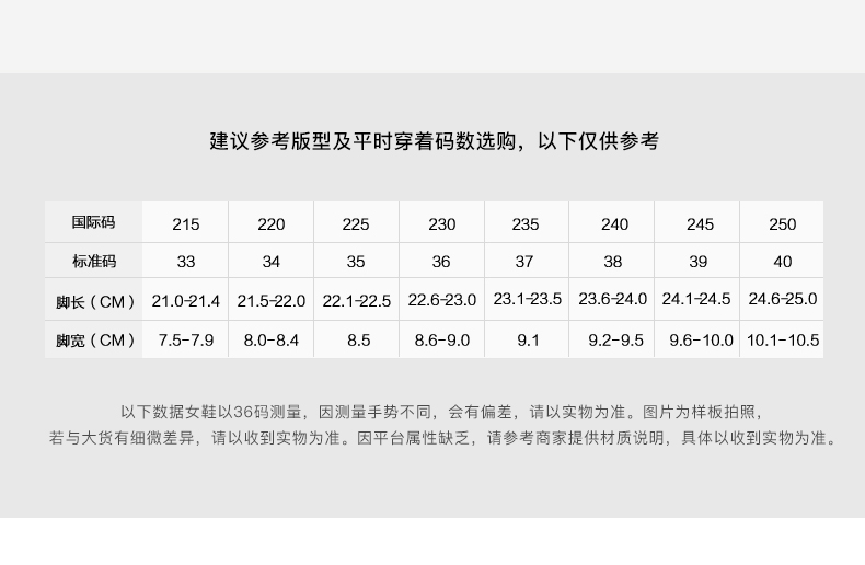 | 鞋跟形状:厚底 | 参考鞋长(女):26.5CM | 流行元素:撞色 | 参考鞋宽(女):11CM | 风格:休闲 |