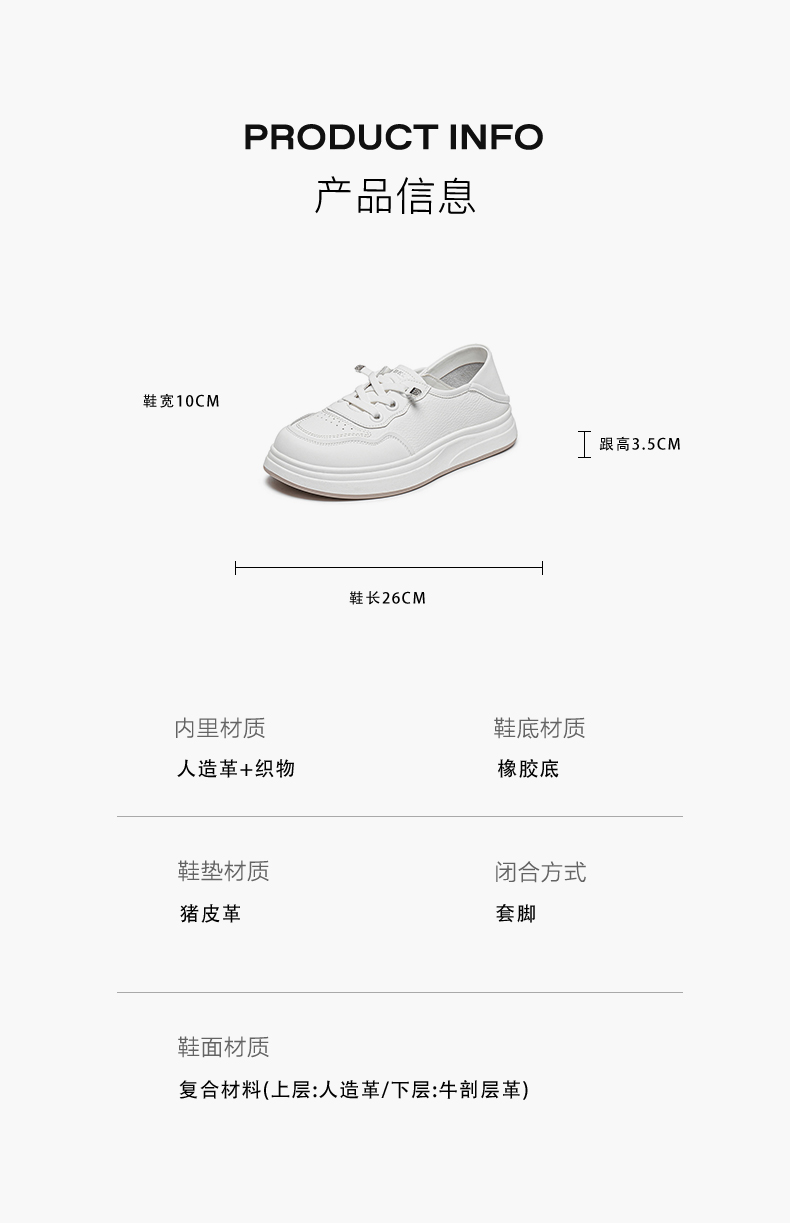 | 配跟:无 | 上市时间:2025年秋季 | 鞋类流行款式:小白鞋 | 鞋头款式:圆头 | 鞋面图案:纯色 |