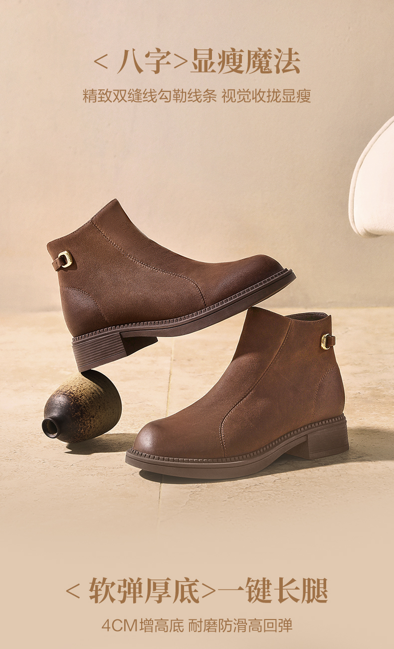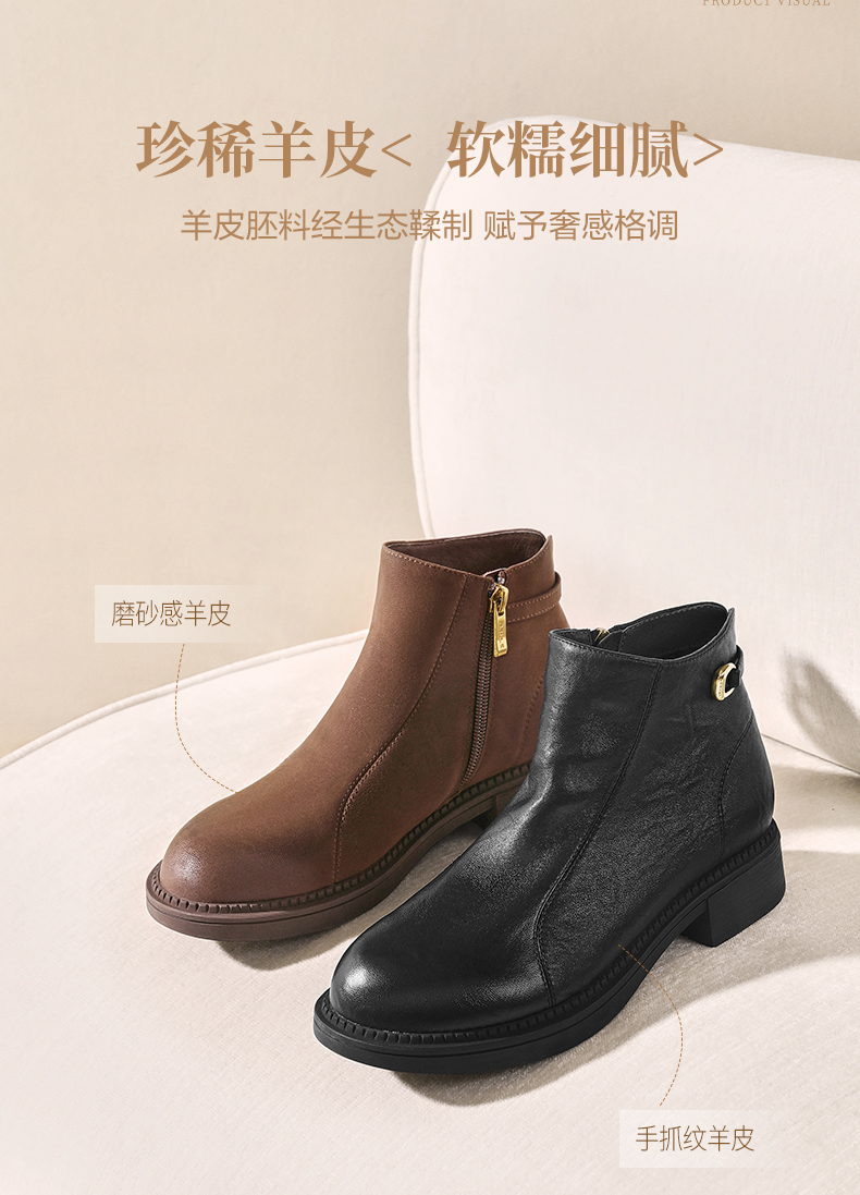 | 鞋底材质:橡胶底 | 靴筒内里材质:猪皮革织物 | 内增高:无 | 鞋面材质:羊皮革 | 闭合方式:侧拉链 |