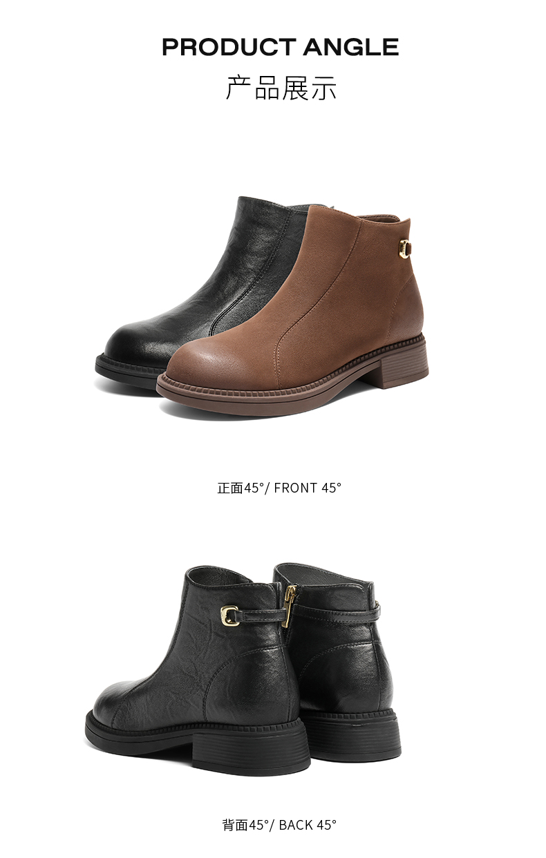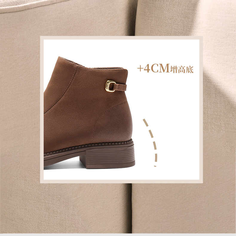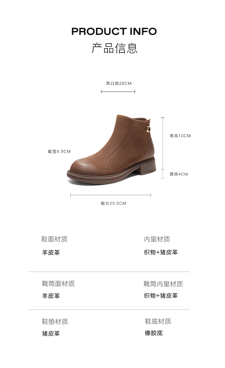 | 筒高数值:10CM | 性别:女子 | 靴筒筒面材质:羊皮革 | 里料材质:猪皮革织物 | 制鞋工艺:车线胶粘 |