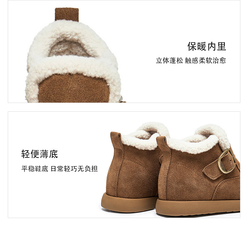 | 参考鞋宽(女):10CM | 风格:休闲 | 鞋面内里材质:人造毛绒 | 色系:卡其 | 跟高数值:2CM |