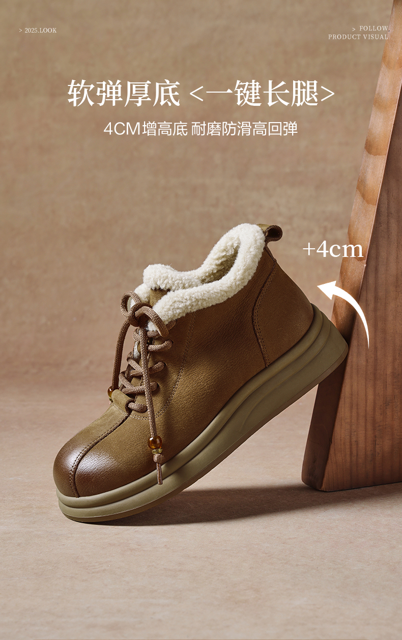 | 参考鞋宽(女):10.5CM | 风格:休闲 | 鞋面内里材质:人造毛绒 | 色系:杏色 | 跟高数值:4CM |