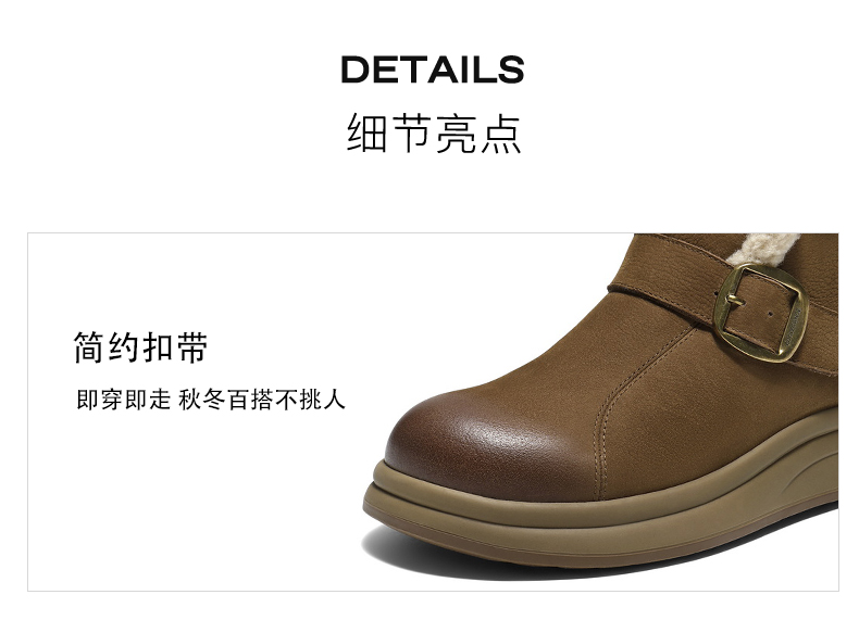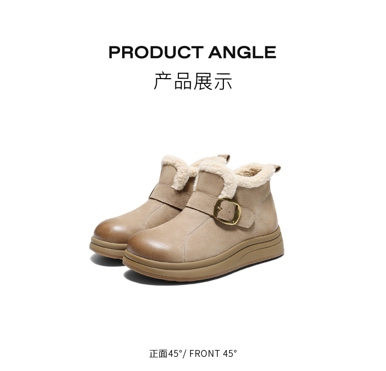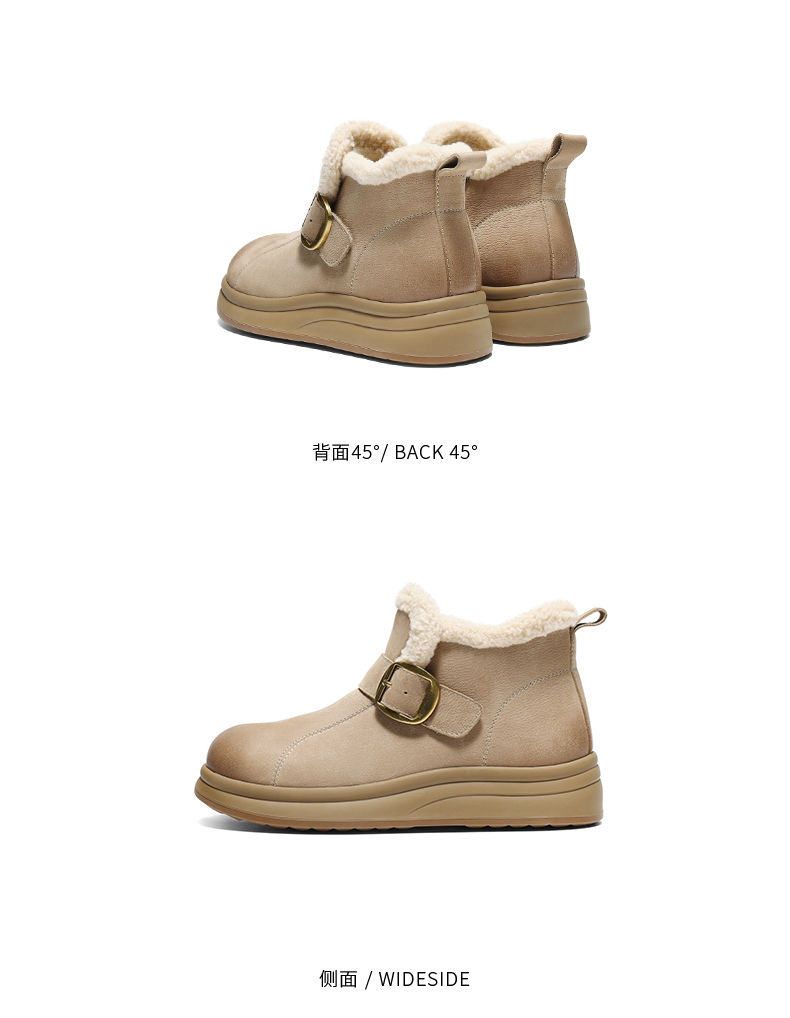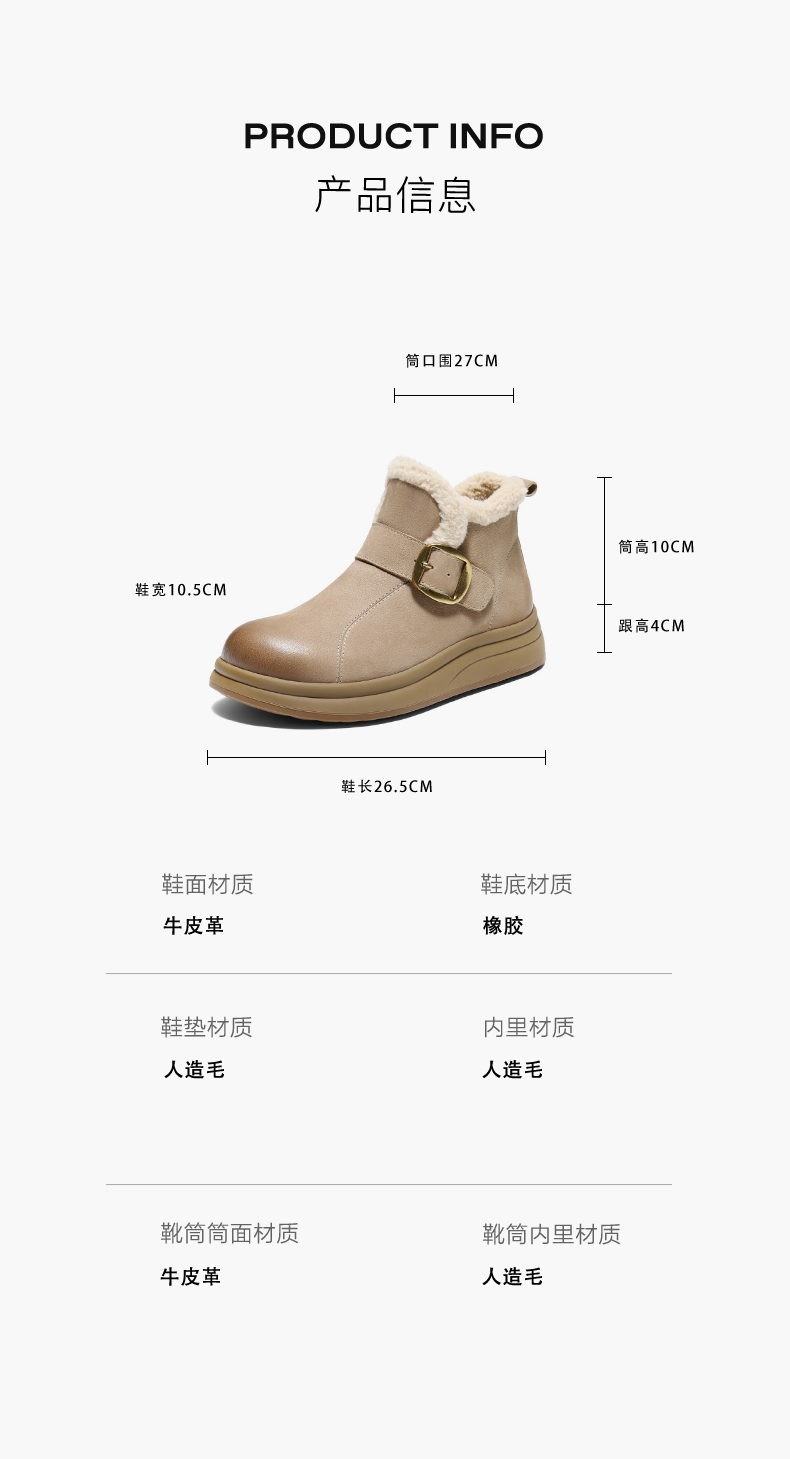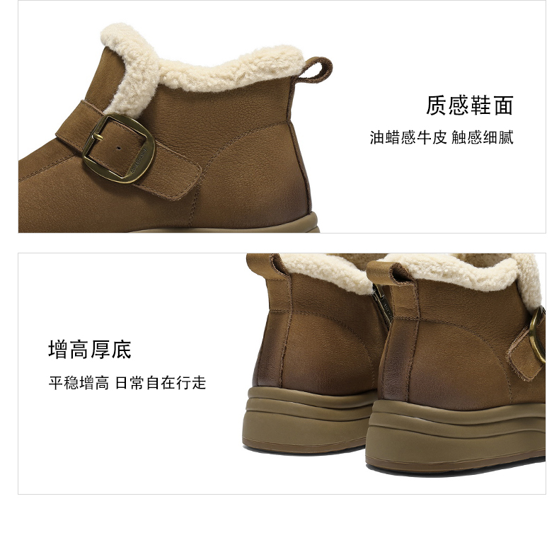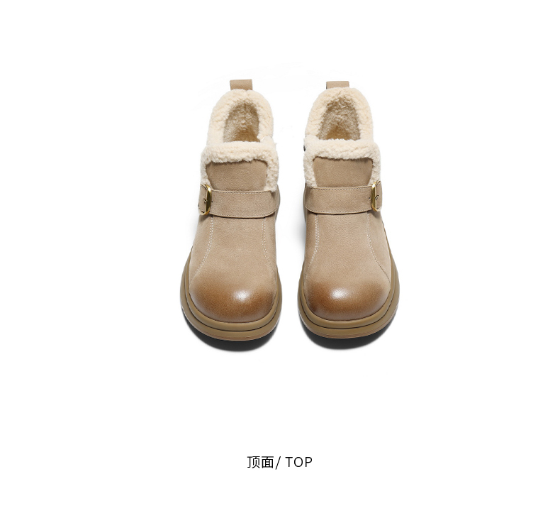| 参考鞋宽(女):10.5CM | 风格:休闲 | 鞋面内里材质:人造毛绒 | 色系:杏色 | 跟高数值:4CM |