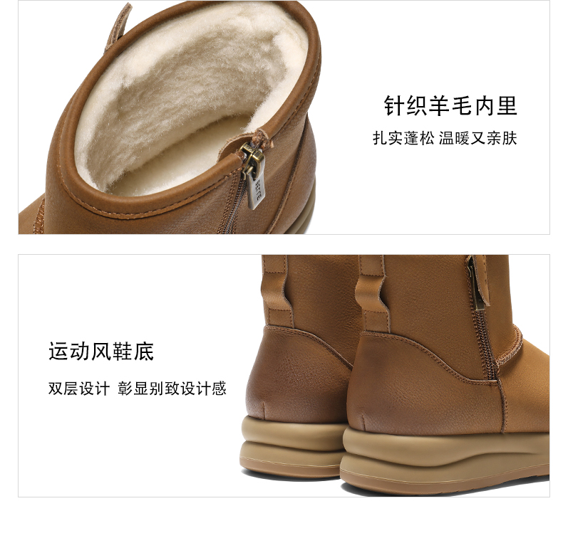 | 鞋底材质:橡胶底 | 靴筒内里材质:针织羊毛 | 内增高:无 | 鞋面材质:复合材料 | 闭合方式:侧拉链 |