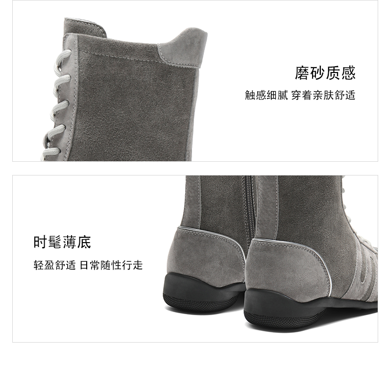 | 鞋底材质:橡胶底 | 靴筒内里材质:织物 | 内增高:无 | 鞋面材质:猪剖层革人造革 | 闭合方式:系带 |