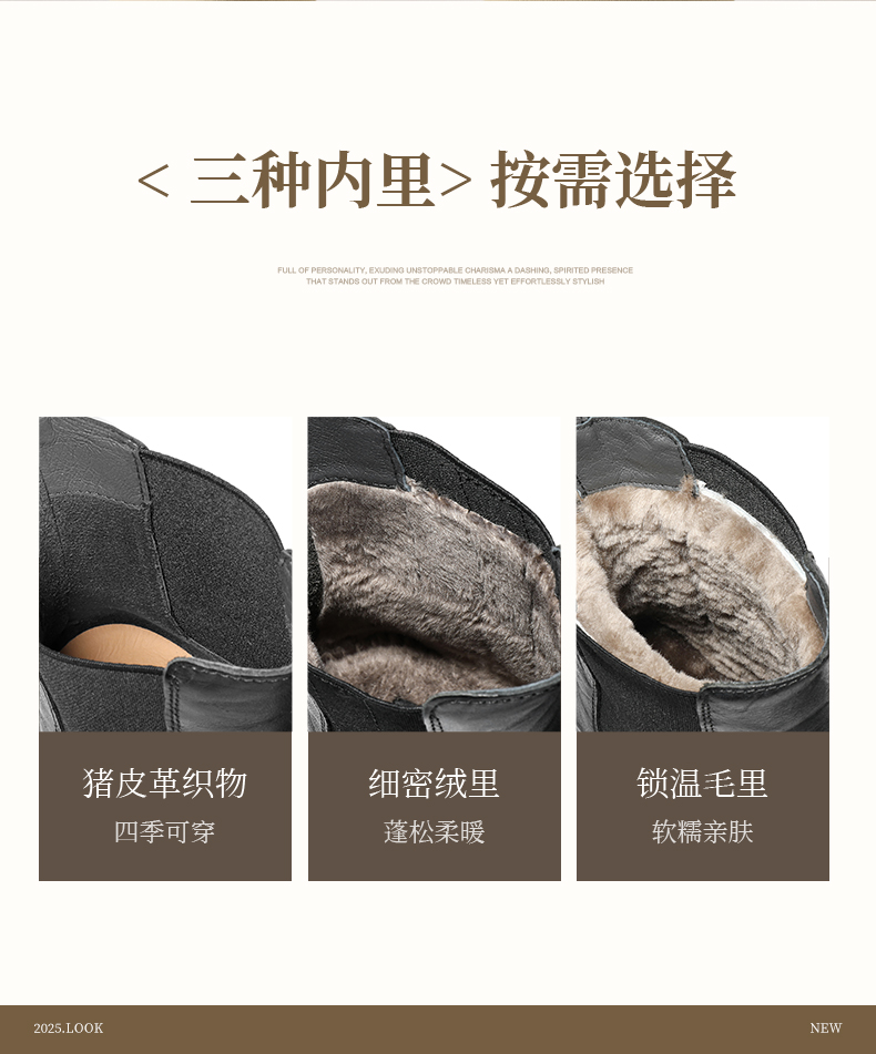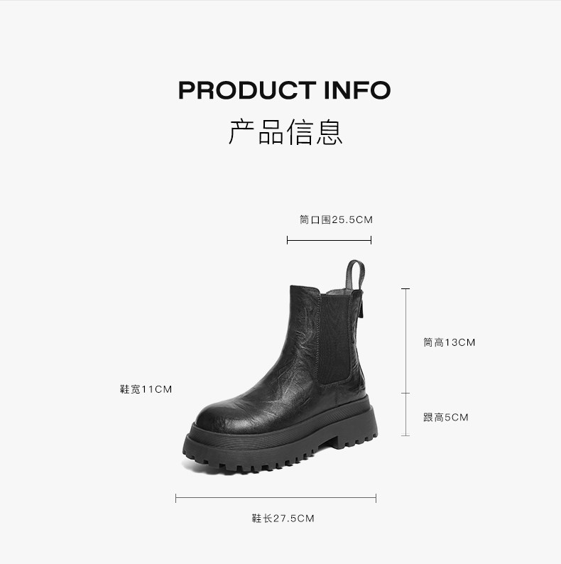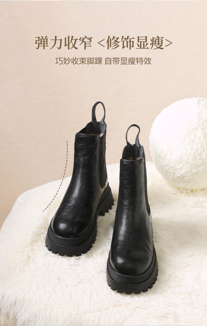 | 帮面材质:织物复合材料 | 配跟:无 | 靴筒口围:25.5CM | 上市时间:2025年冬季 | 鞋类流行款式:切尔西靴 |