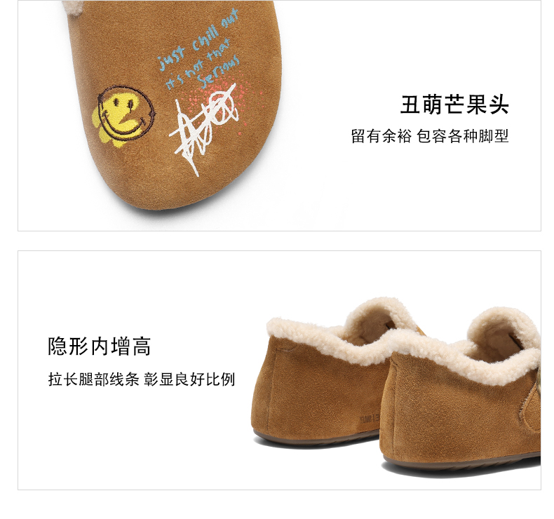 | 鞋帮:低帮 | 鞋底材质:橡胶底 | 靴筒内里材质:人造毛 | 内增高:无 | 鞋面材质:牛剖层革 |