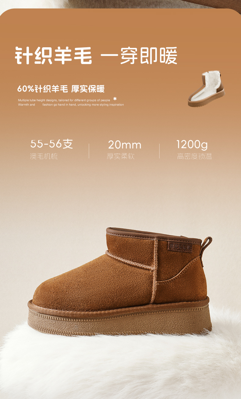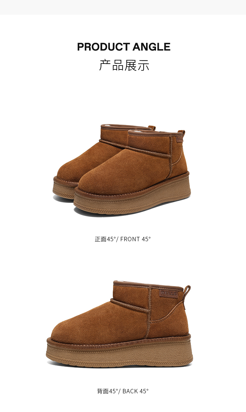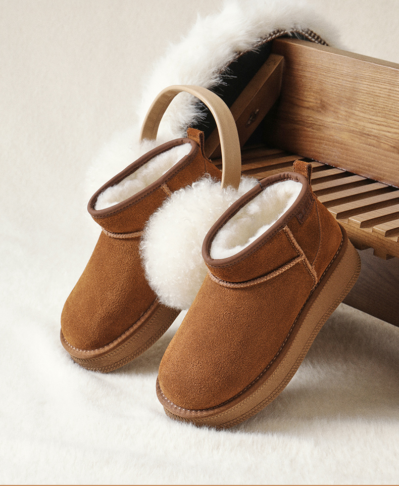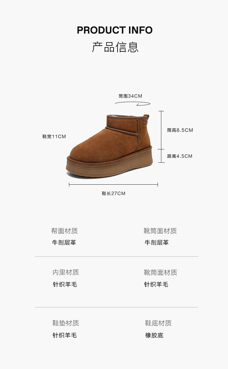 | 帮面材质:牛剖层革 | 配跟:无 | 靴筒口围:34CM | 上市时间:2025年冬季 | 鞋类流行款式:雪地靴 |