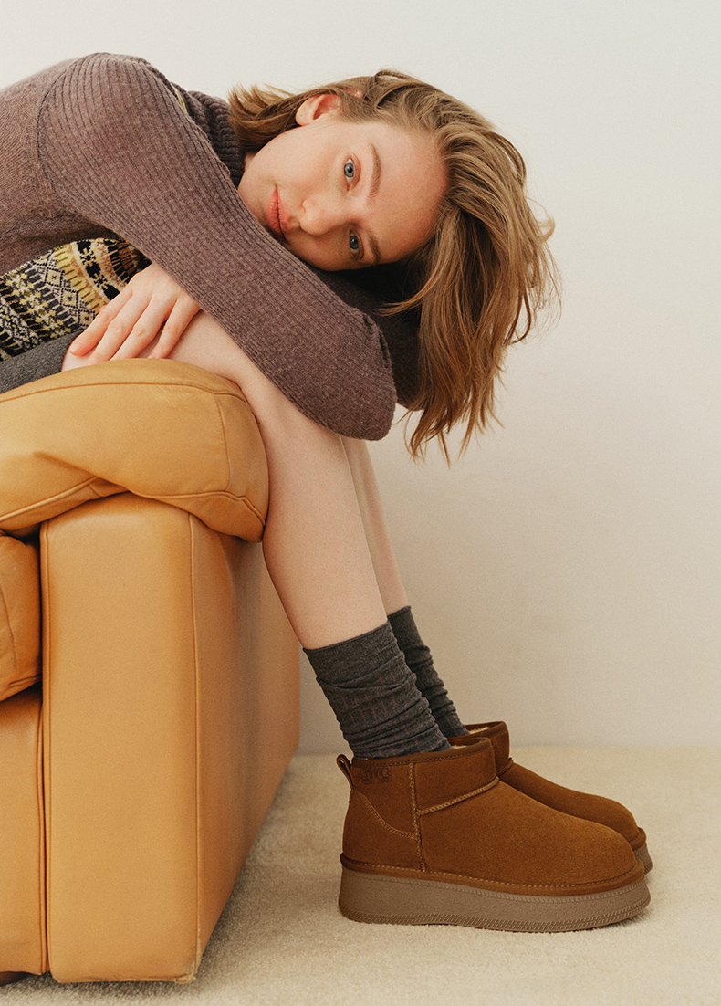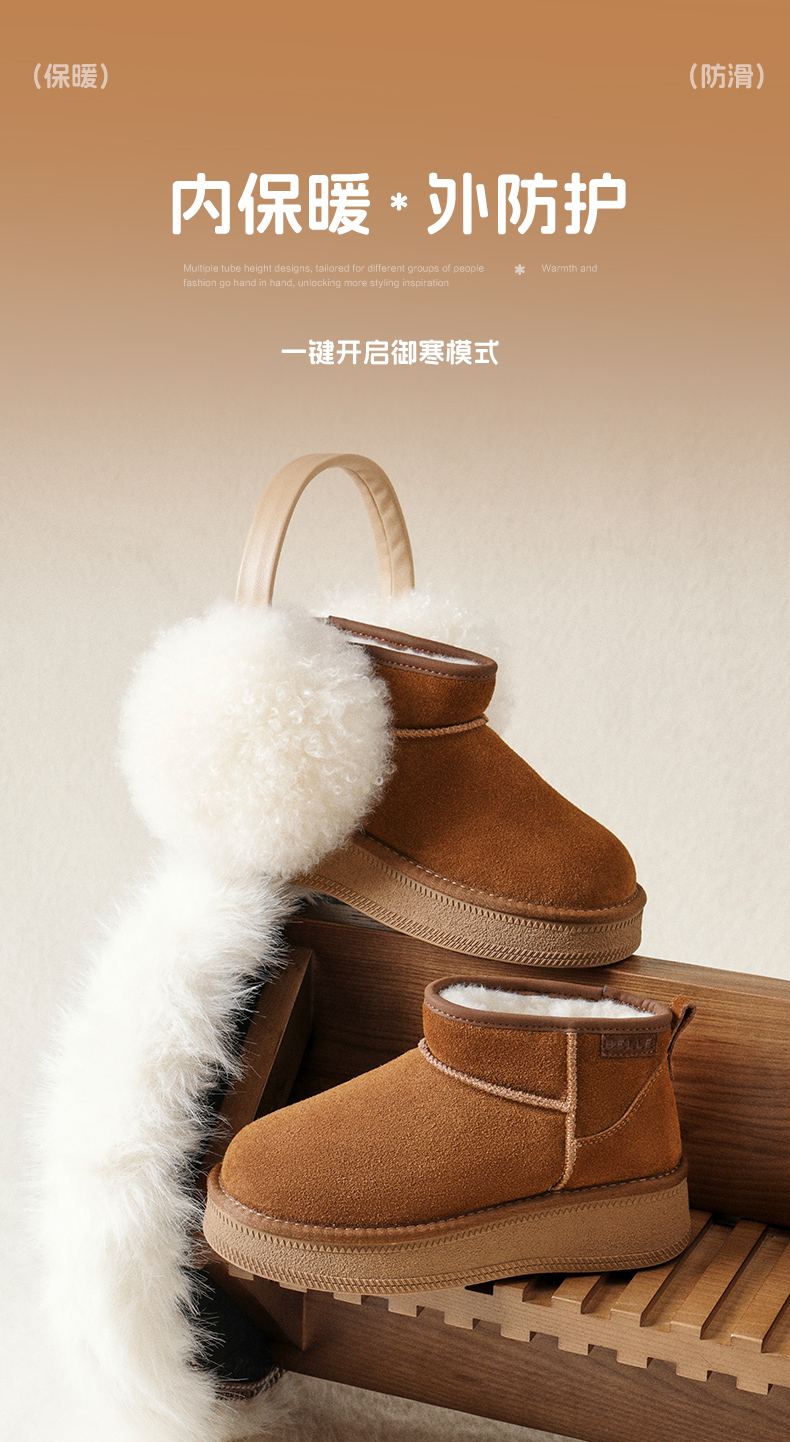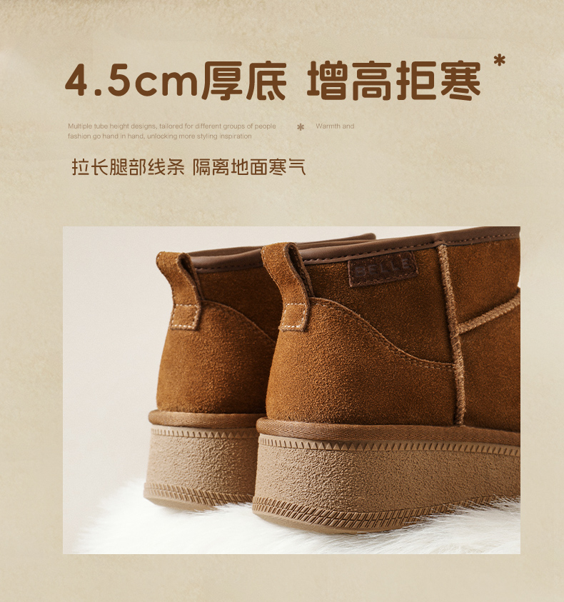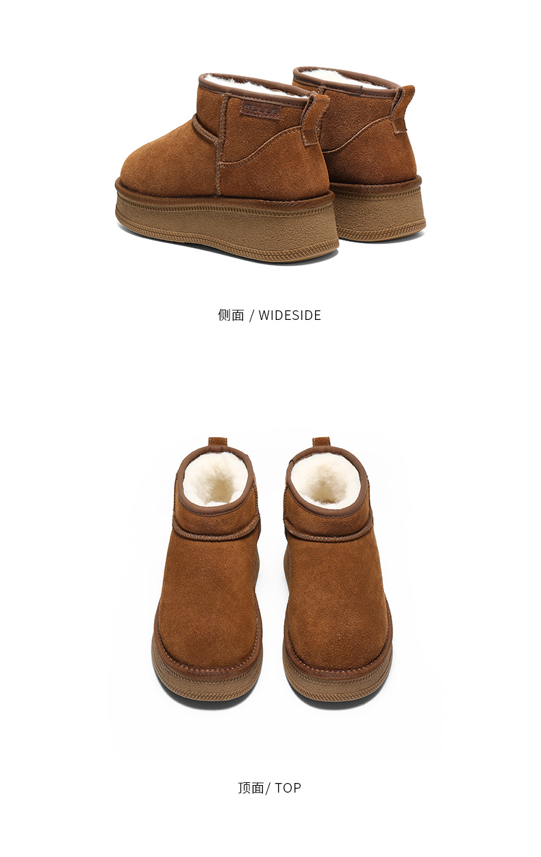 | 帮面材质:牛剖层革 | 配跟:无 | 靴筒口围:34CM | 上市时间:2025年冬季 | 鞋类流行款式:雪地靴 |