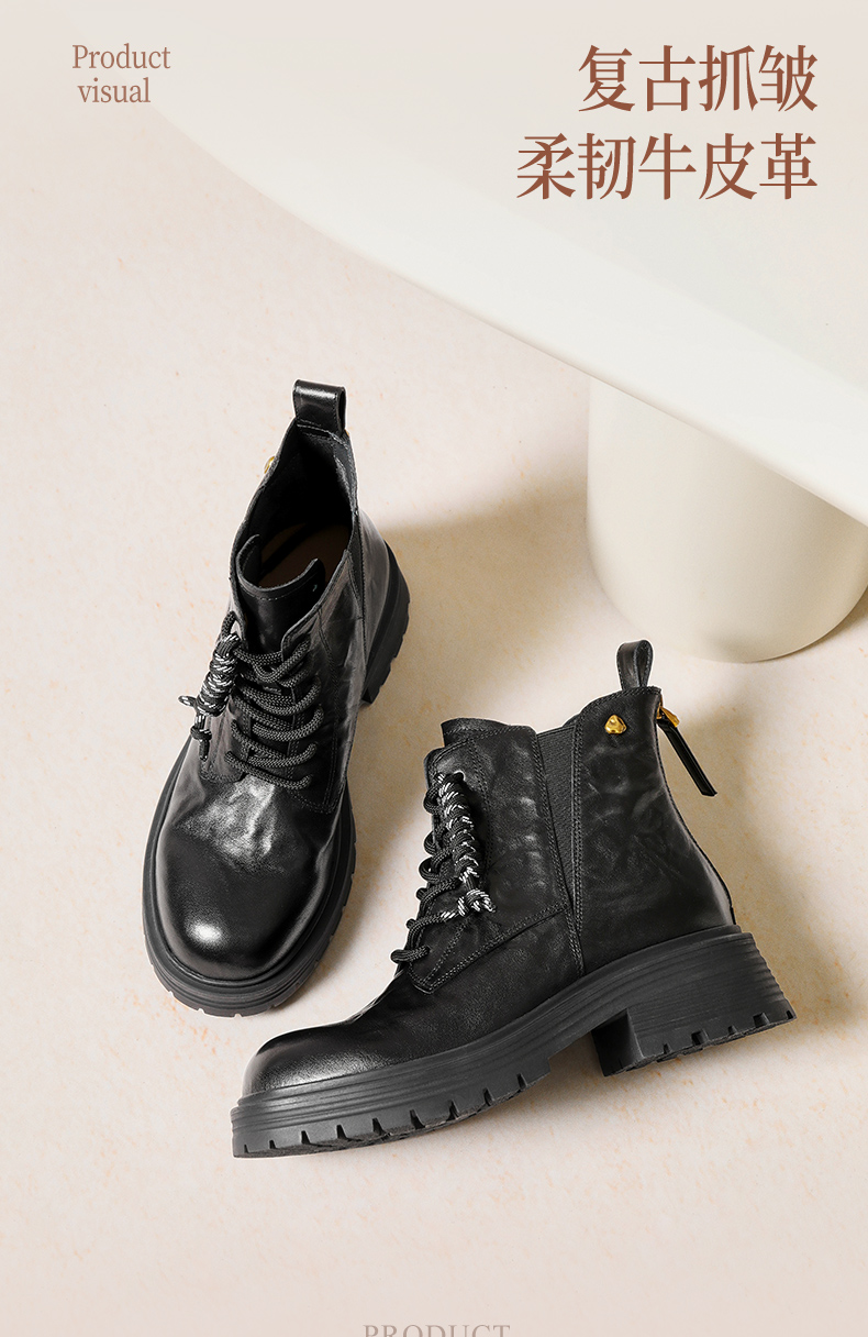 | 帮面材质:织物牛皮革 | 配跟:无 | 靴筒口围:26CM | 上市时间:2025年冬季 | 鞋类流行款式:马丁靴 |