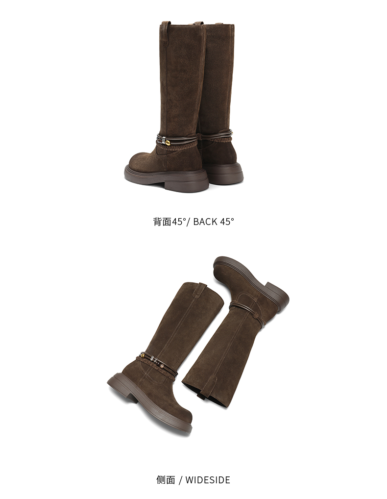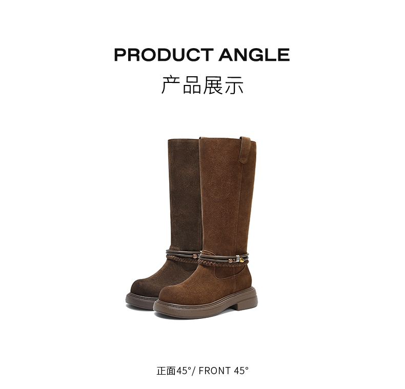 | 风格:休闲 | 鞋面内里材质:猪皮革织物 | 色系:卡其 | 跟高数值:4.5CM | 筒高数值:35CM |