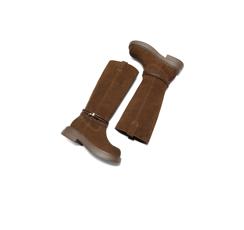 | 风格:休闲 | 鞋面内里材质:猪皮革织物 | 色系:咖啡色 | 跟高数值:4.5CM | 筒高数值:35CM |