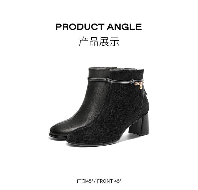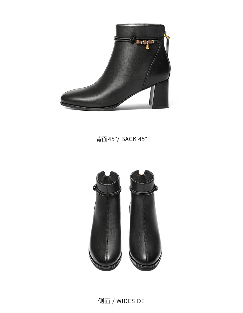 | 筒高数值:12CM | 性别:女子 | 靴筒筒面材质:羊皮革 | 里料材质:猪皮革人造短毛绒 | 制鞋工艺:车线胶粘 |