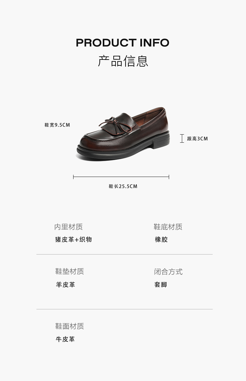 | 闭合方式:套脚 | 配跟:无 | 上市时间:2025年秋季 | 鞋类流行款式:乐福鞋 | 鞋头款式:圆头 |
