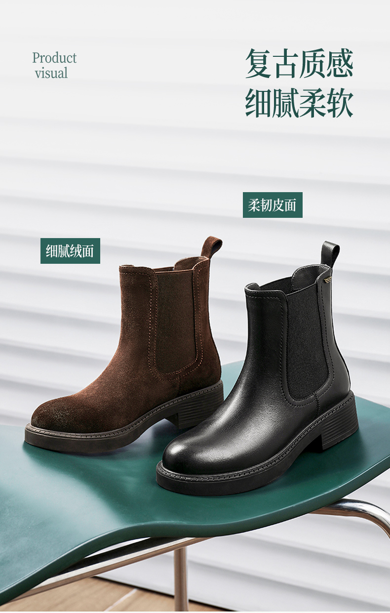 | 配跟:无 | 靴筒口围:26.5CM | 上市时间:2025年冬季 | 鞋类流行款式:切尔西靴 | 鞋头款式:圆头 |