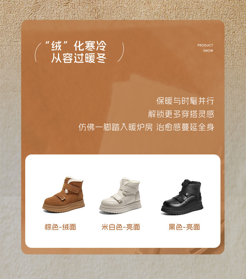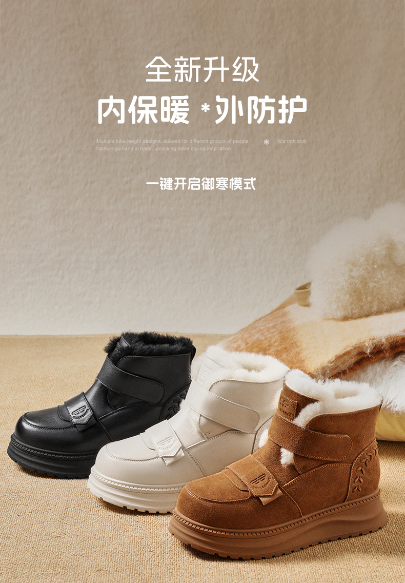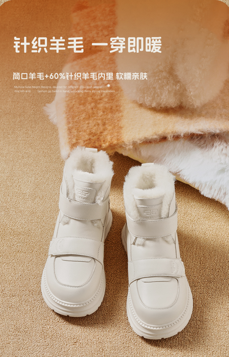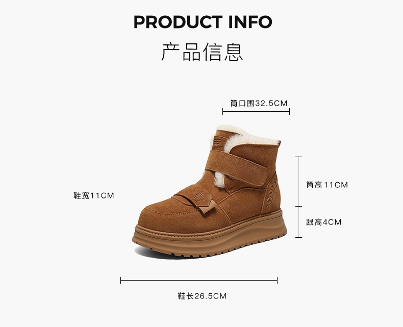 | 帮面材质:人造革牛剖层革 | 配跟:无 | 靴筒口围:32.5CM | 上市时间:2025年冬季 | 鞋类流行款式:雪地靴 |