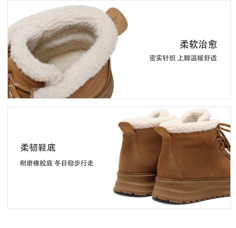 | 帮面材质:牛剖层革 | 配跟:无 | 靴筒口围:31CM | 上市时间:2025年冬季 | 鞋类流行款式:雪地靴 |