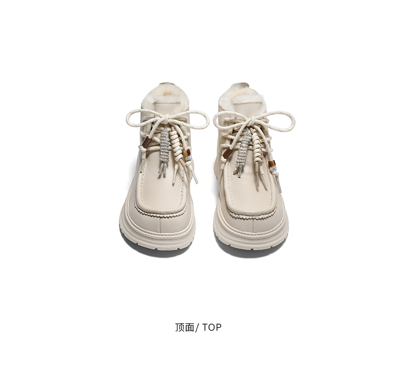 | 帮面材质:牛剖层革 | 配跟:无 | 靴筒口围:31CM | 上市时间:2025年冬季 | 鞋类流行款式:雪地靴 |