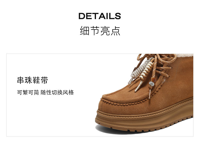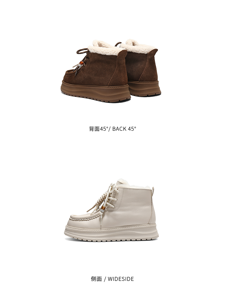 | 帮面材质:牛剖层革 | 配跟:无 | 靴筒口围:31CM | 上市时间:2025年冬季 | 鞋类流行款式:雪地靴 |