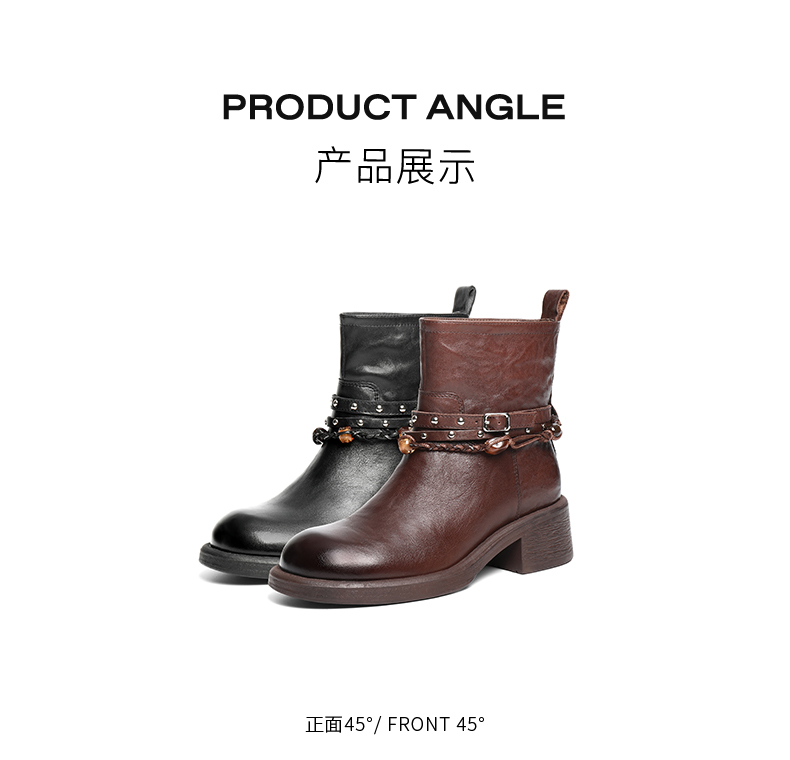 | 筒高数值:14.5CM | 性别:女子 | 靴筒筒面材质:牛皮革 | 里料材质:猪皮革人造短毛绒 | 制鞋工艺:车线胶粘 |