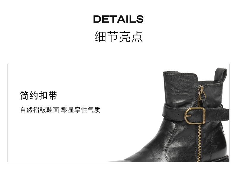 | 鞋底材质:橡胶底 | 靴筒内里材质:猪皮革织物 | 内增高:无 | 鞋面材质:牛皮革 | 闭合方式:侧拉链 |