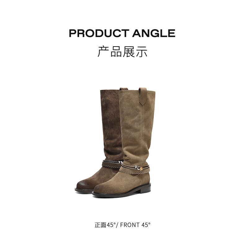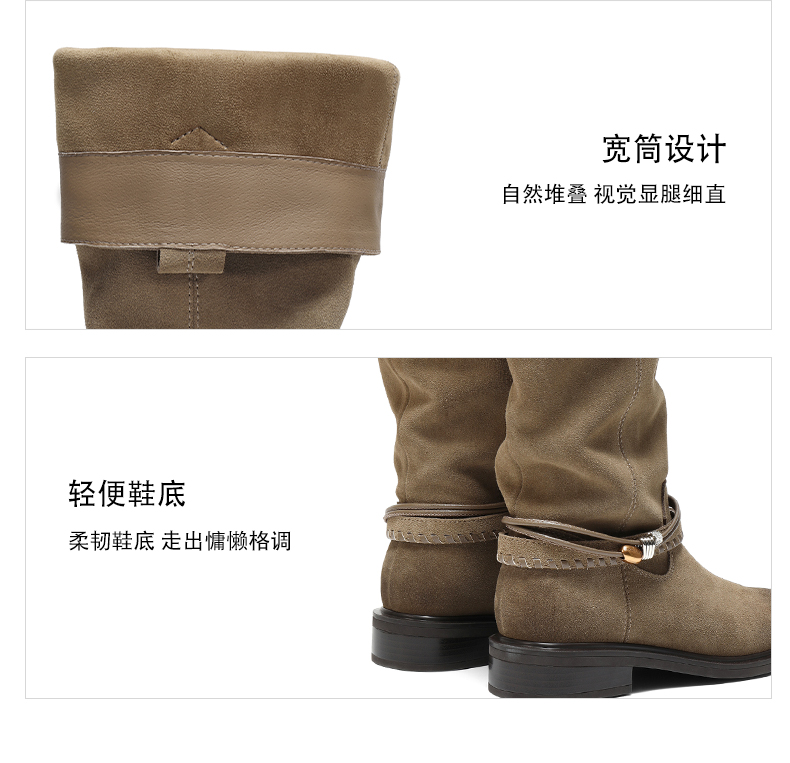 | 风格:休闲复古 | 鞋面内里材质:猪皮革织物 | 色系:卡其 | 跟高数值:3CM | 筒高数值:38CM |