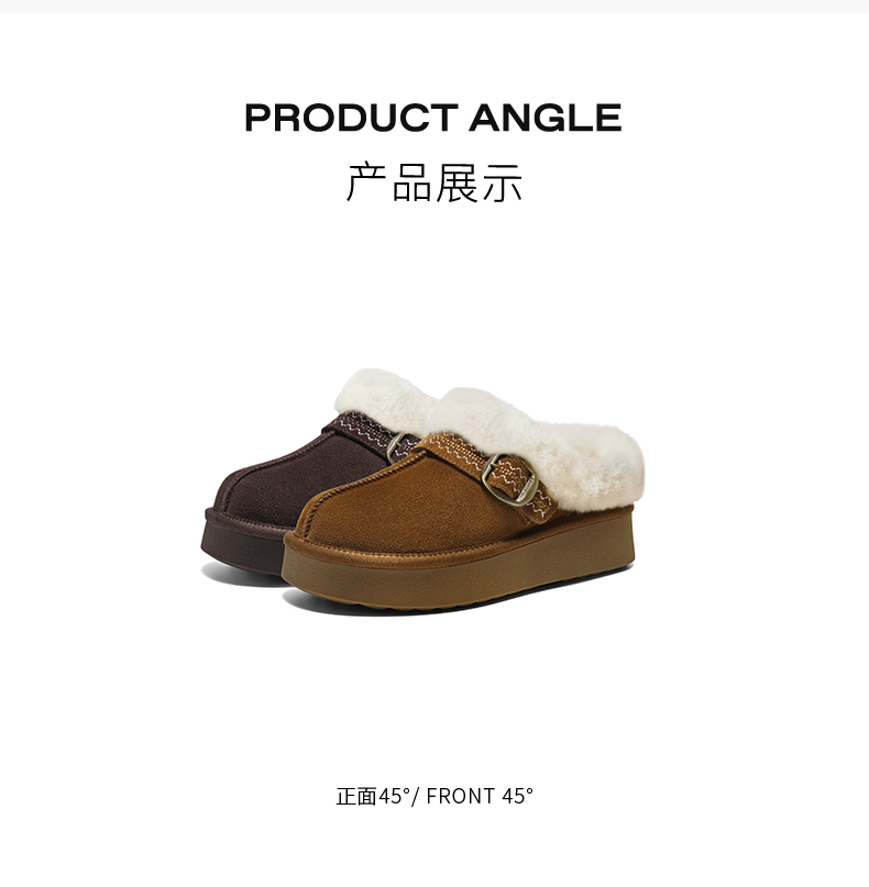 | 鞋面内里材质:针织羊毛 | 色系:咖啡色 | 跟高数值:3CM | 适用人群:通用 | 性别:女子 |