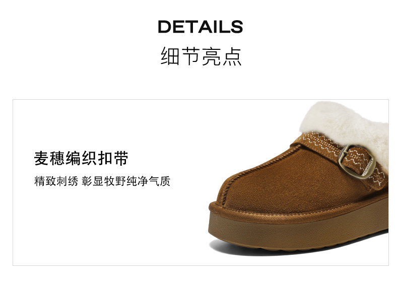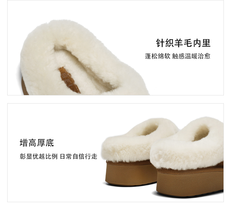 | 鞋面内里材质:针织羊毛 | 色系:棕色 | 跟高数值:3CM | 适用人群:通用 | 性别:女子 |