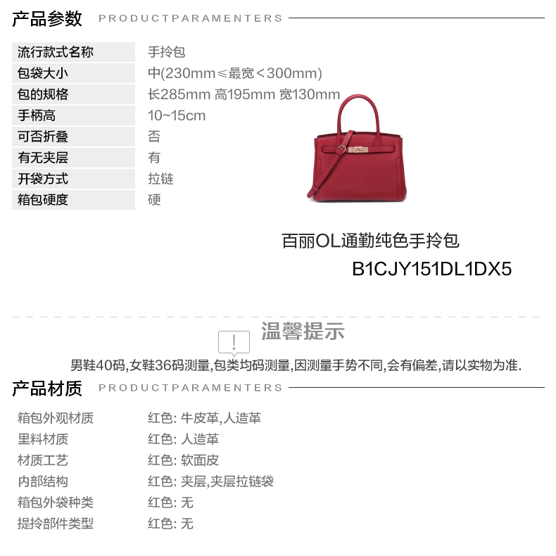 | 内部结构:夹层夹层拉链袋 | 背带方式:单肩/斜挎 | 风格:OL通勤 | 色系:红色 | 适用场景:通勤 |
