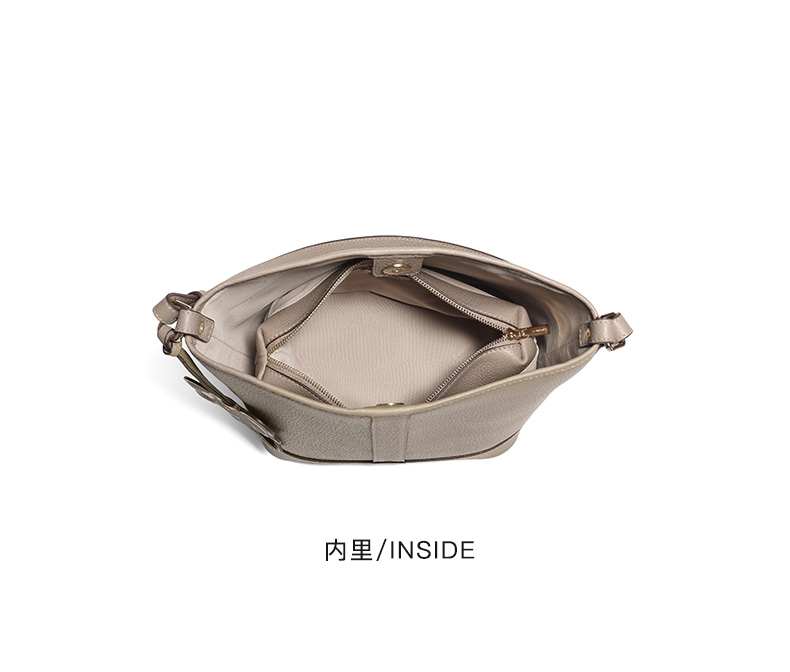 | 包的规格:W270*H220*D140mm | 内部结构:内袋 | 背带方式:单肩/斜挎 | 风格:OL通勤 | 色系:灰色 |