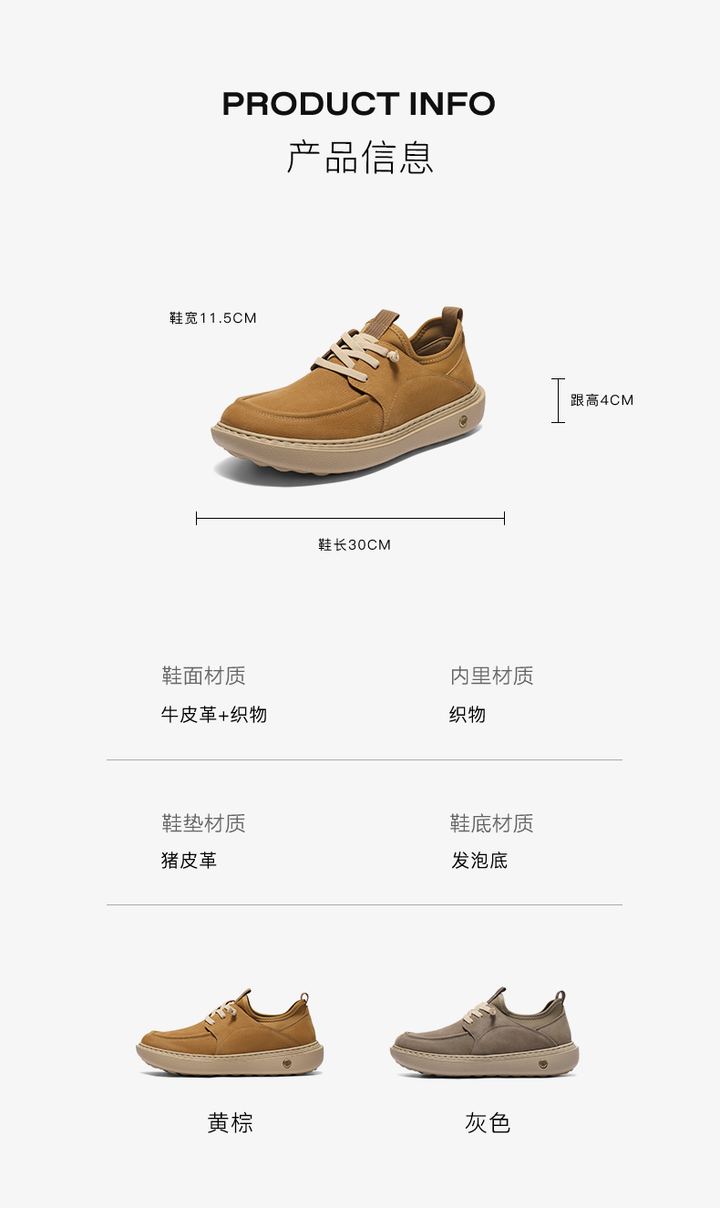 | 风格:休闲 | 色系:黄色 | 跟高数值:4CM | 40码鞋宽参考(男):11.5CM | 性别:男子 |