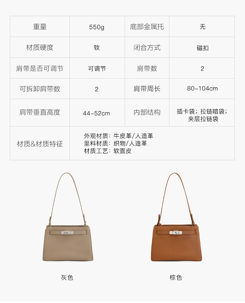 | 适用场景:通勤 | 开袋方式:磁扣 | 性别:女 | 手柄高:无 | 里料材质:织物/人造革 |