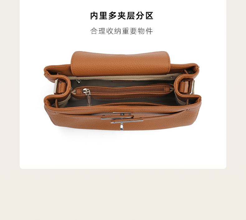 | 包的规格:W260*H170*D110mm | 内部结构:拉链暗袋/卡位 | 背带方式:单肩/斜挎 | 风格:简约 | 色系:棕色 |
